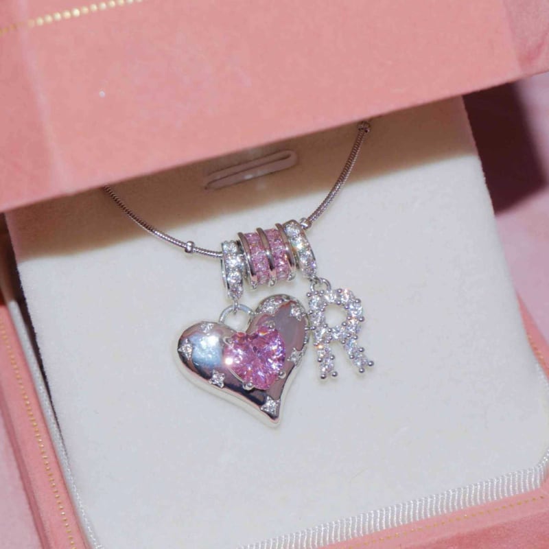 可愛らしいハートモチーフに英小文字イニシャルをあしらったネックレス。