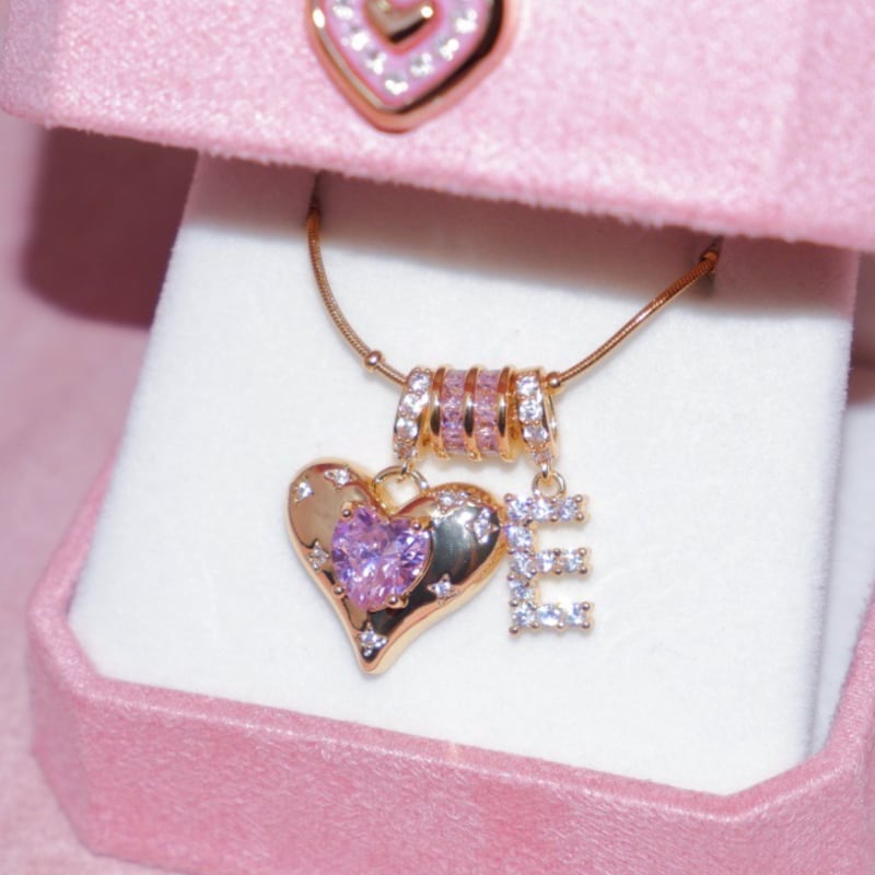 上品なゴールドカラーに英小文字イニシャルとハートを組み合わせたネックレス。