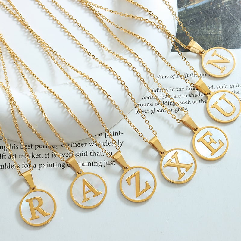 circle shell alphabet necklace m0025