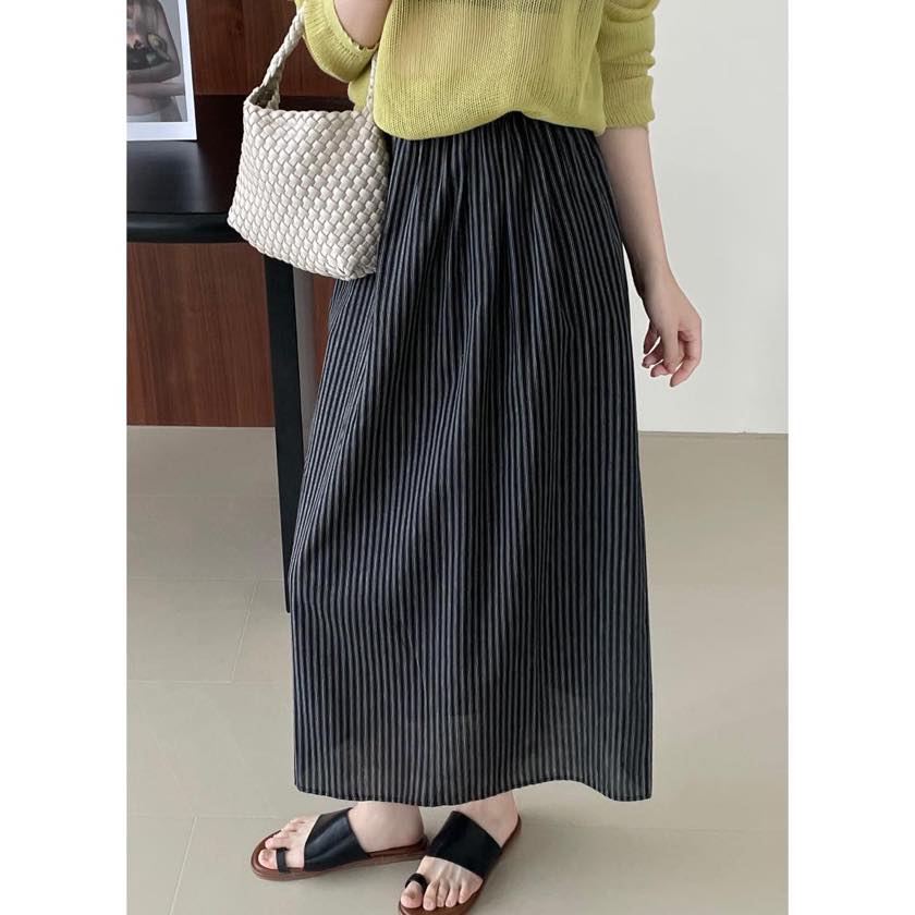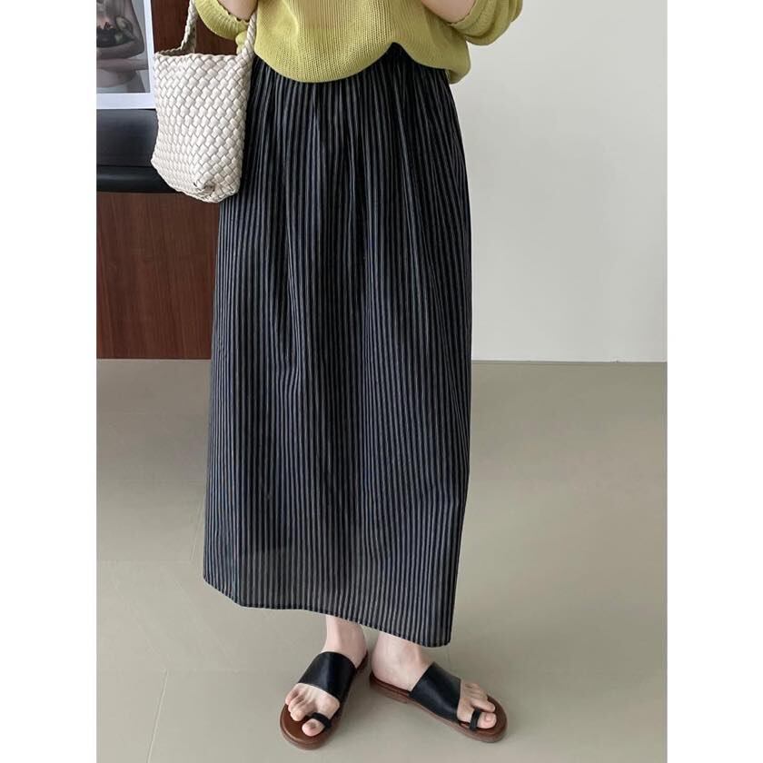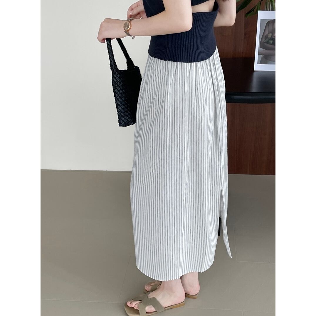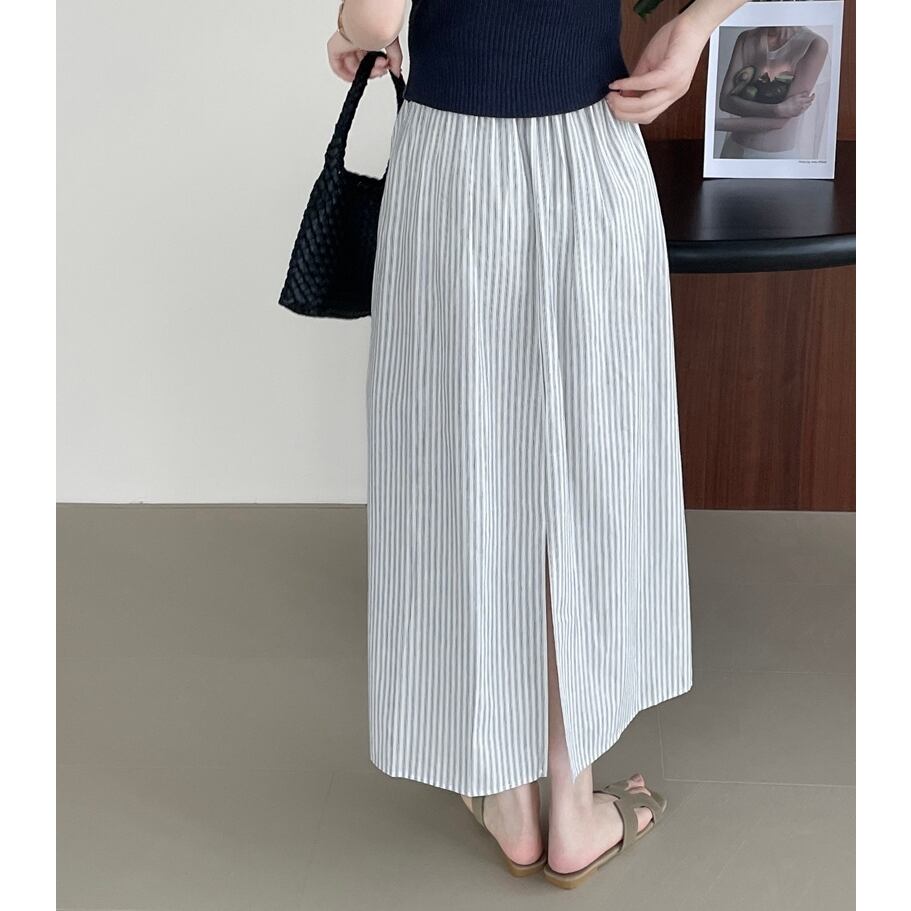 back slit striped long skirt m0082