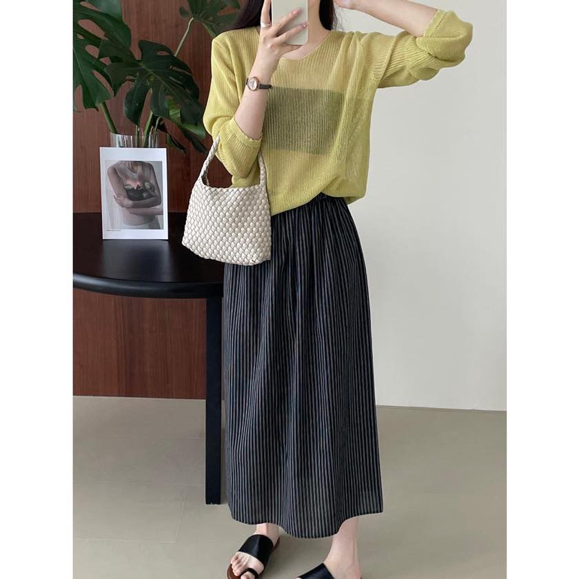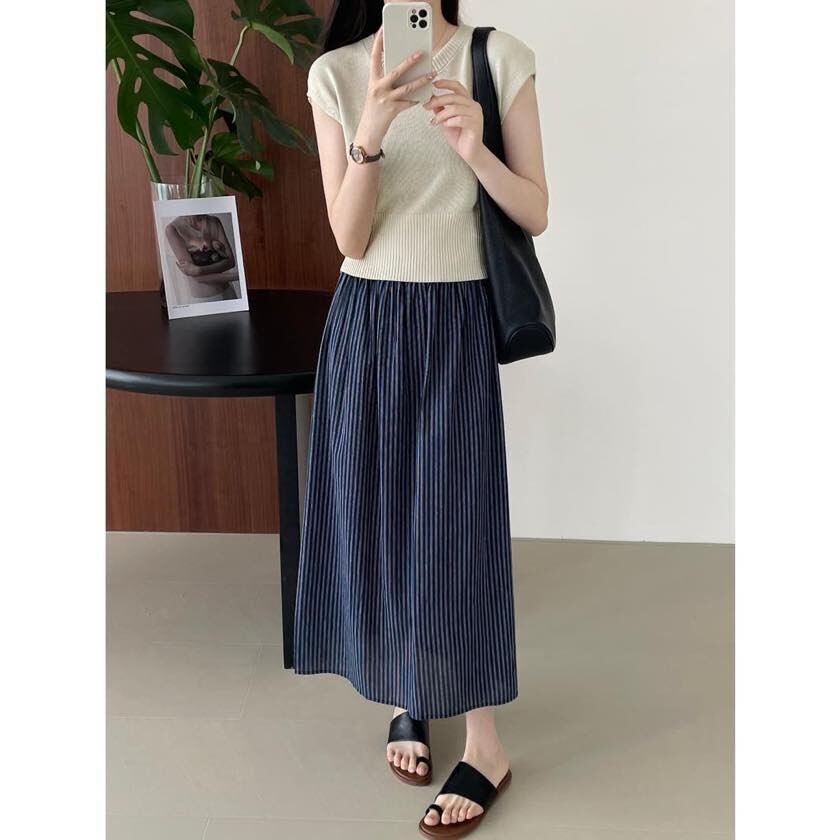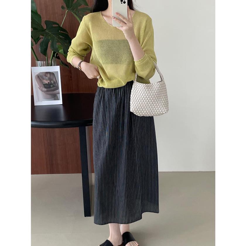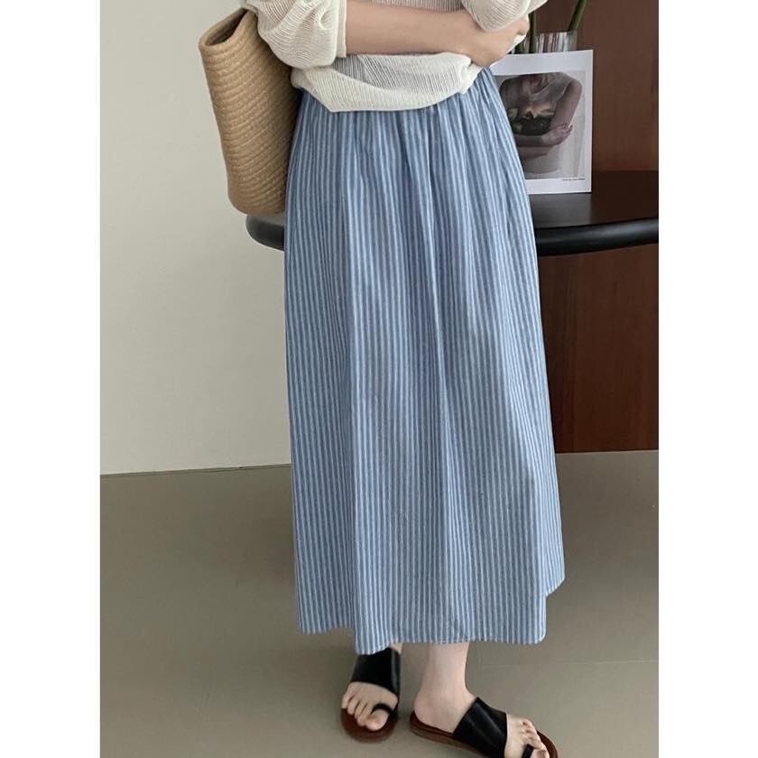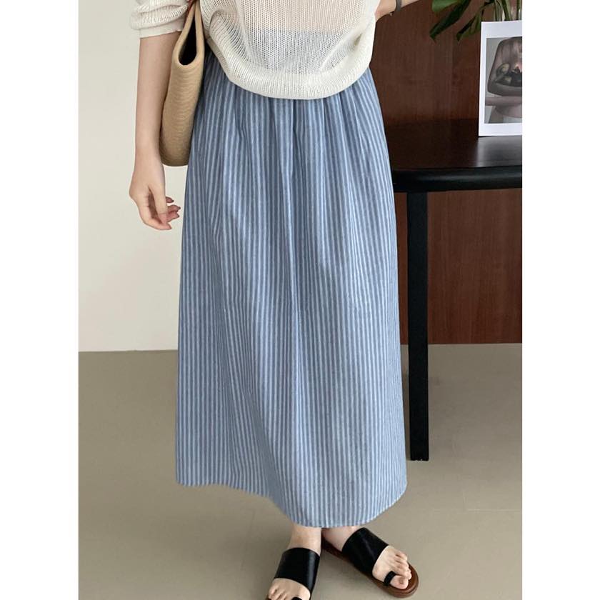 back slit striped long skirt m0082