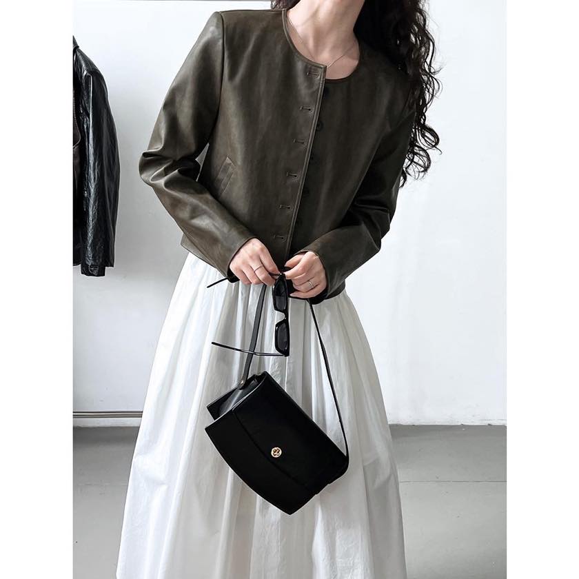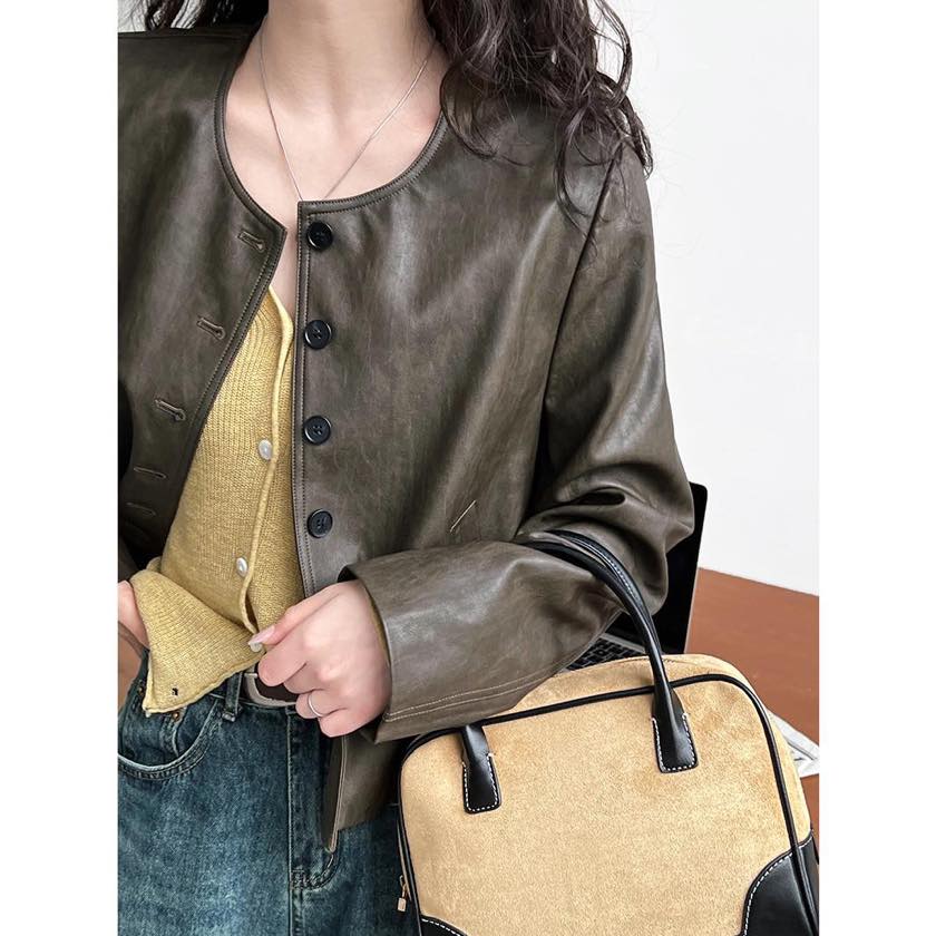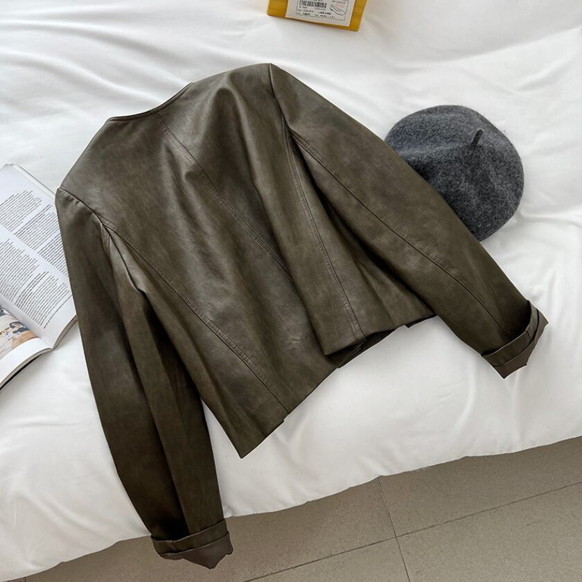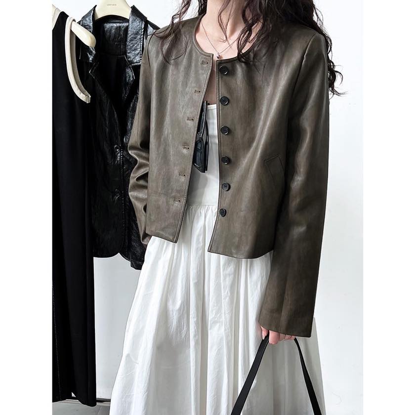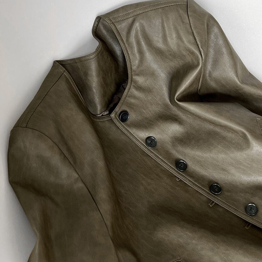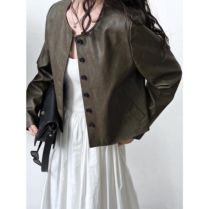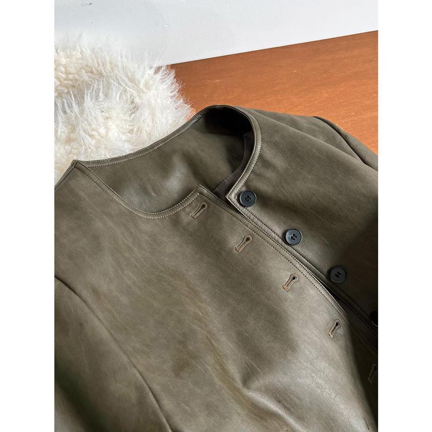 collarless faux leather button jacket m0264