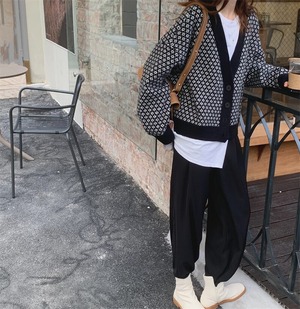 retro pattern long sleeve knit cardigan m0301