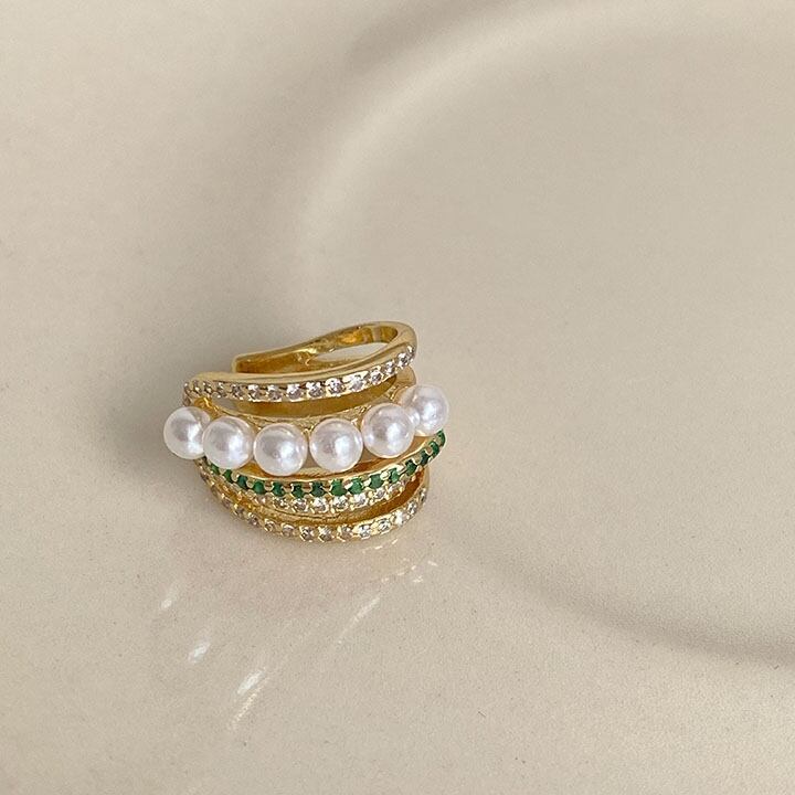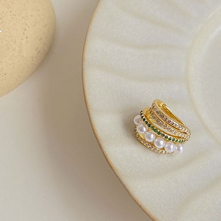 pearl crystal gold ear cuff m0318