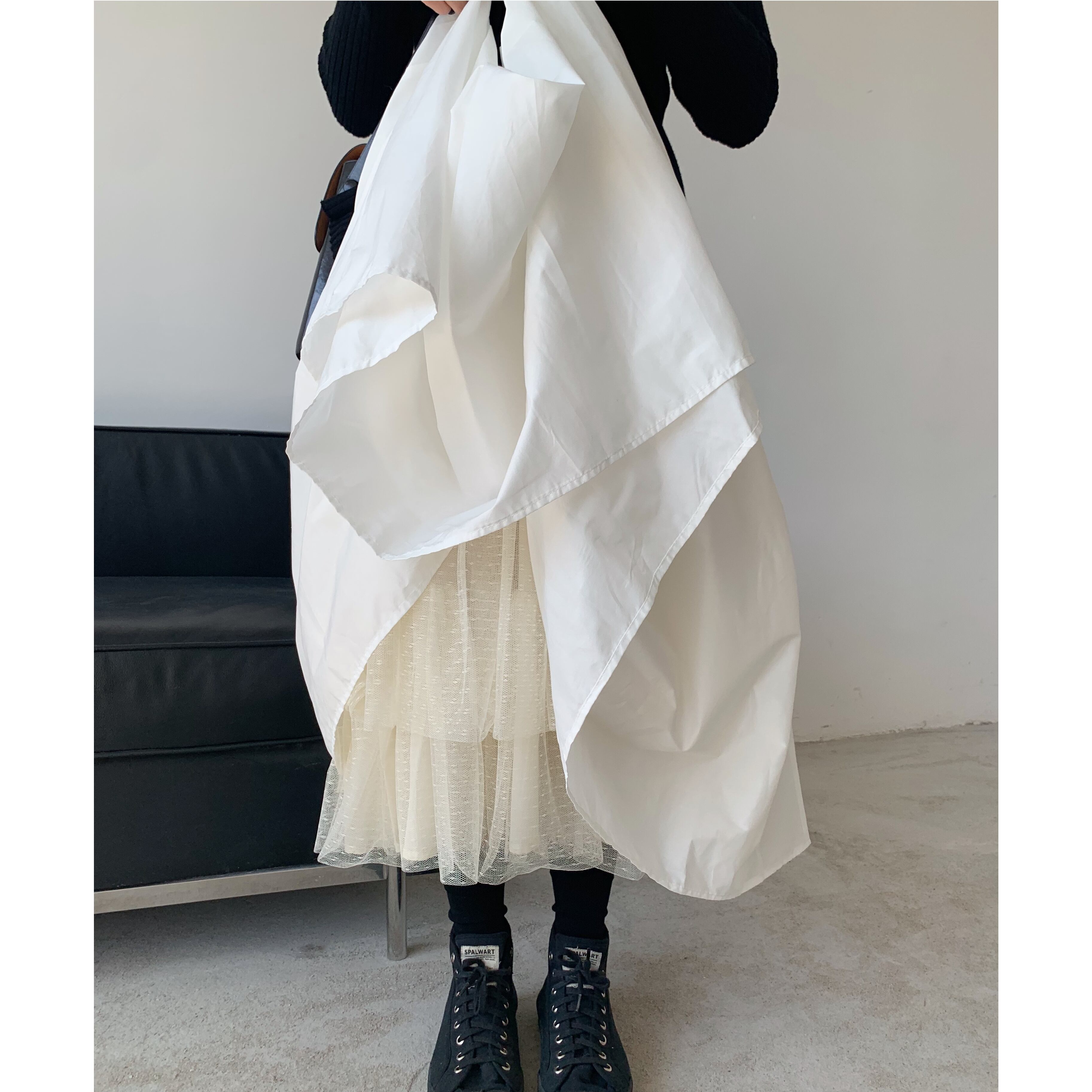 Inside tulle volume long skirt m0320