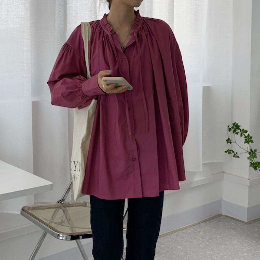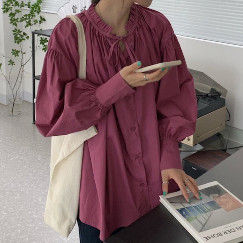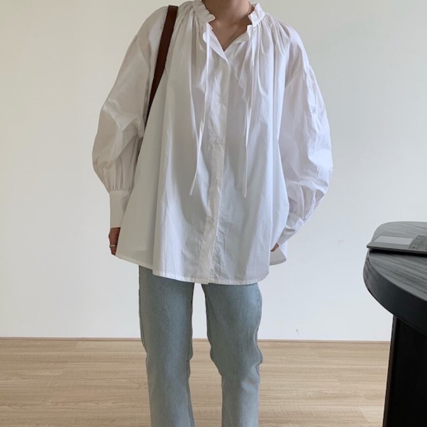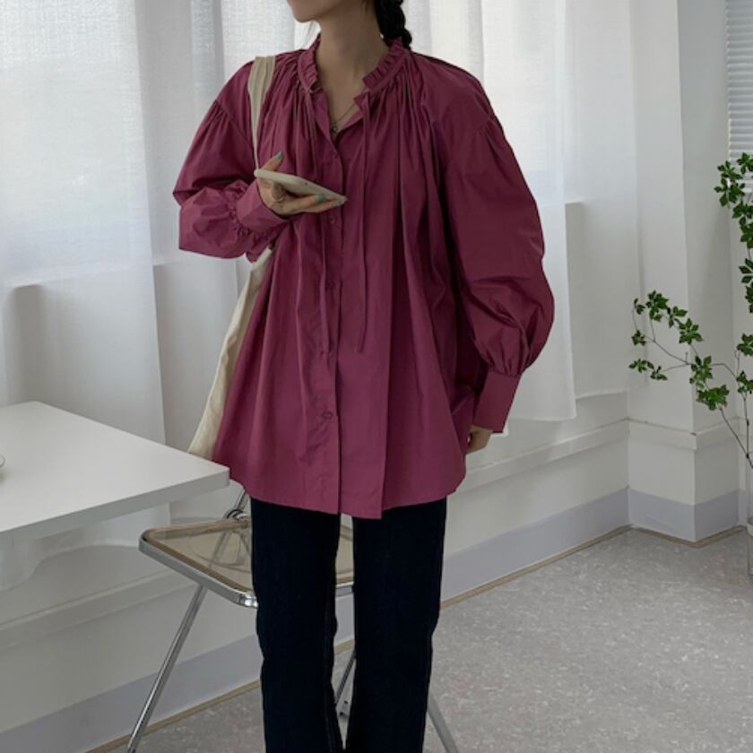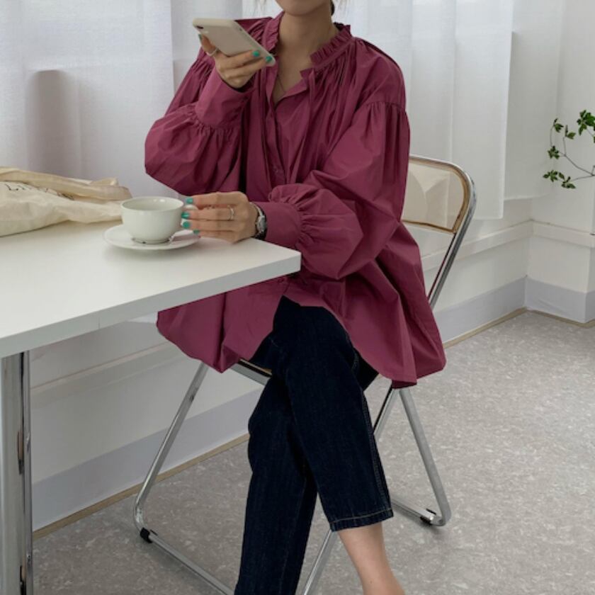 lantern sleeve gather shirt m0326