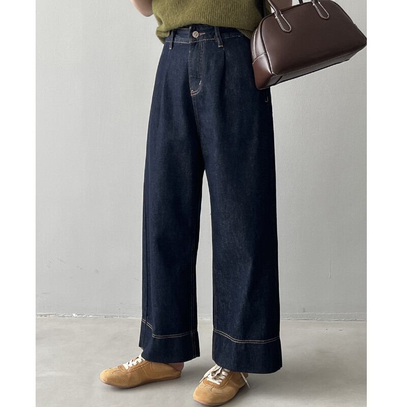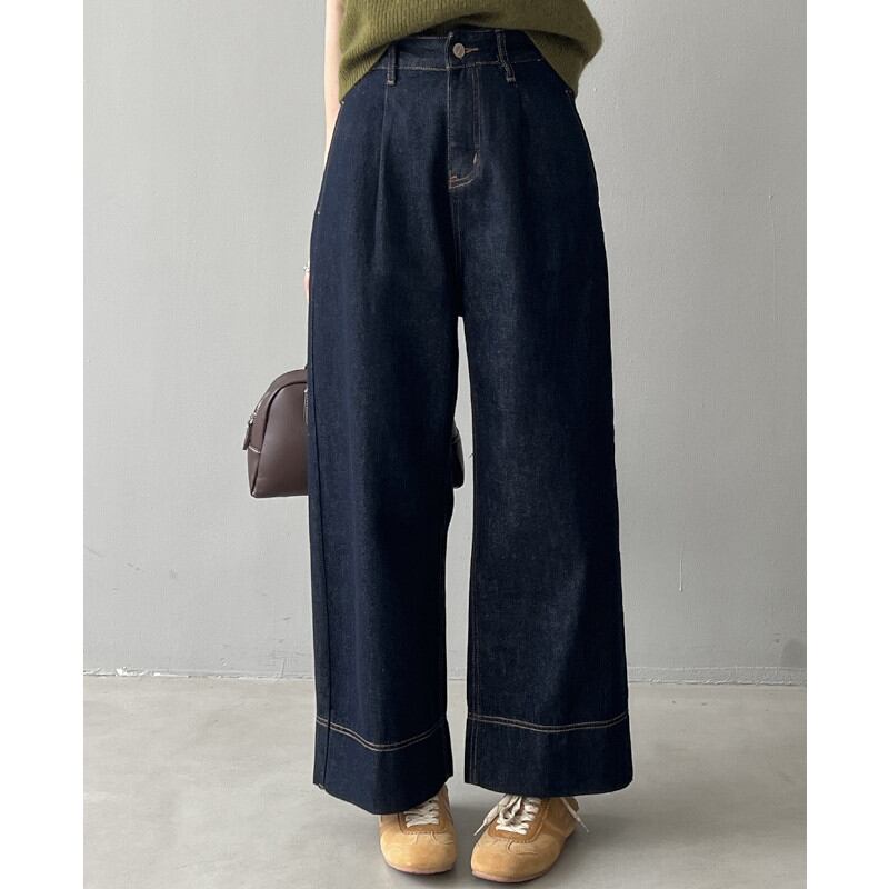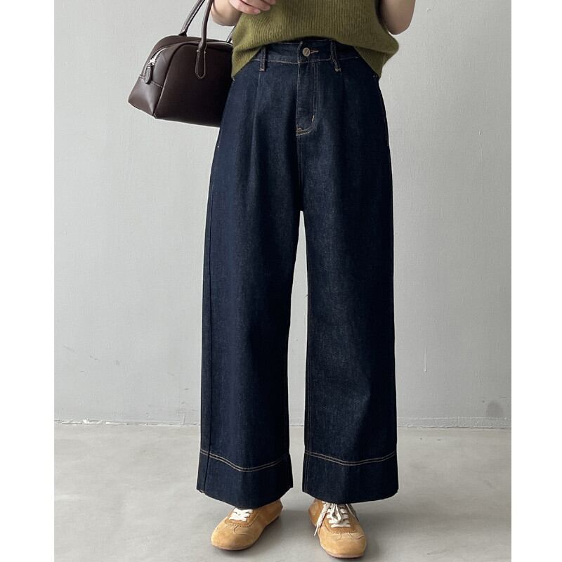 トレンド感たっぷりのハイウエストワイドデニムパンツ。