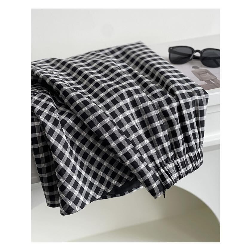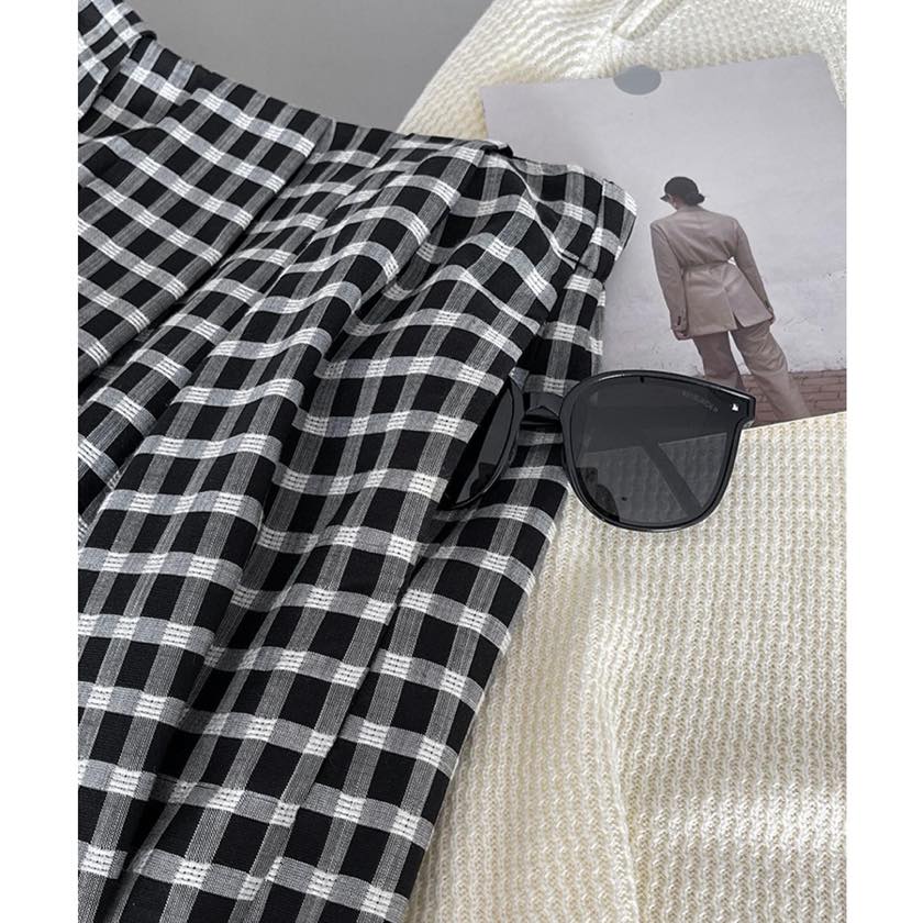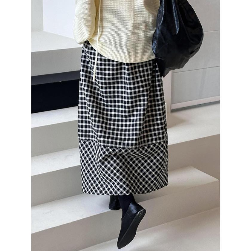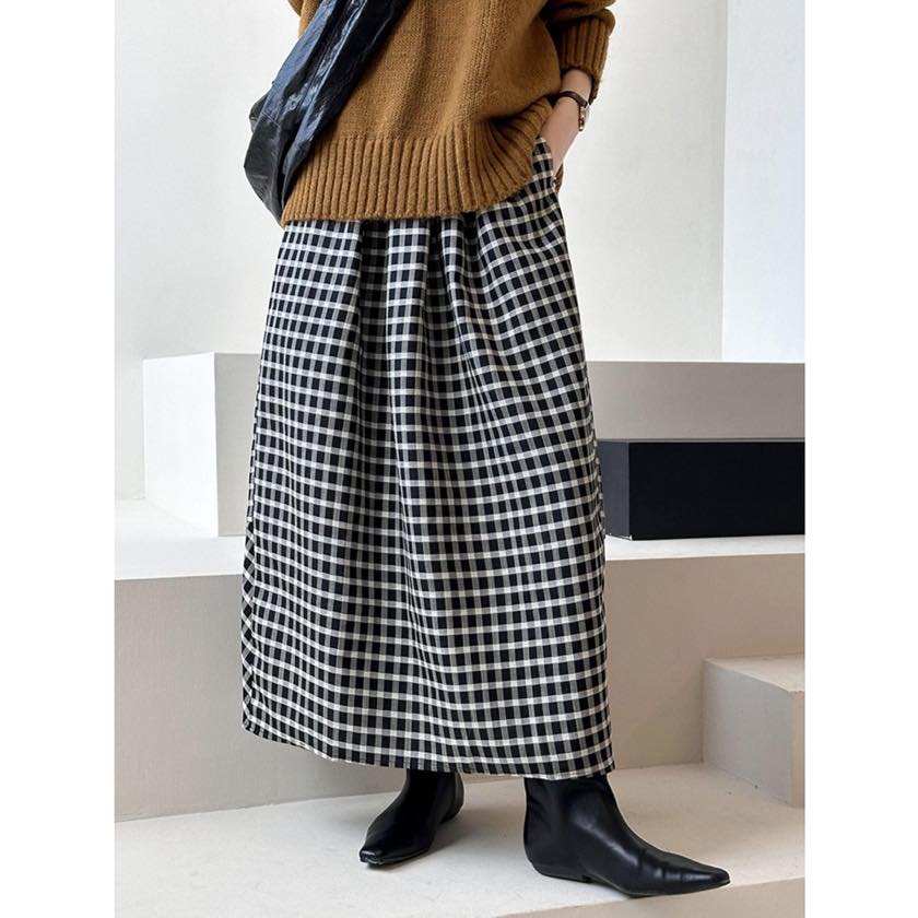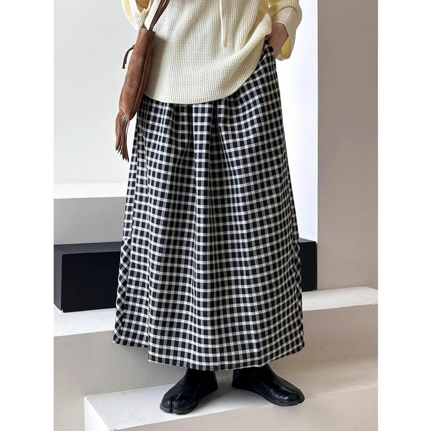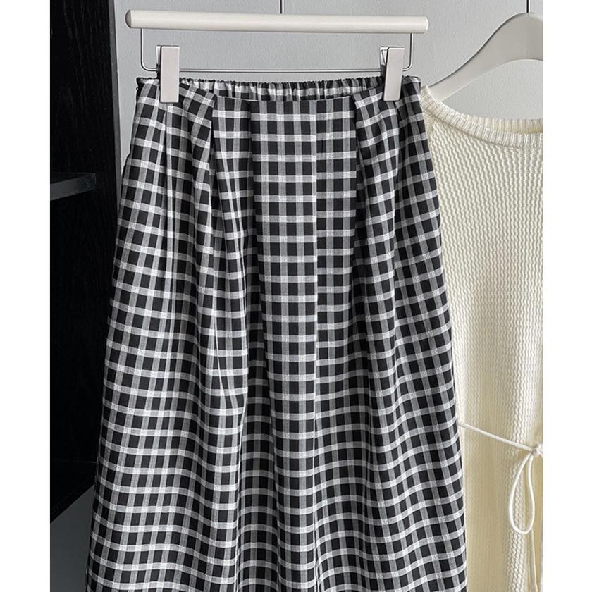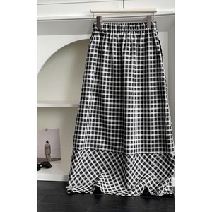 gingham check A-line long skirt m0387