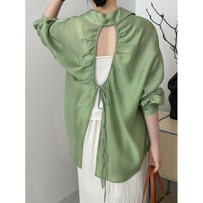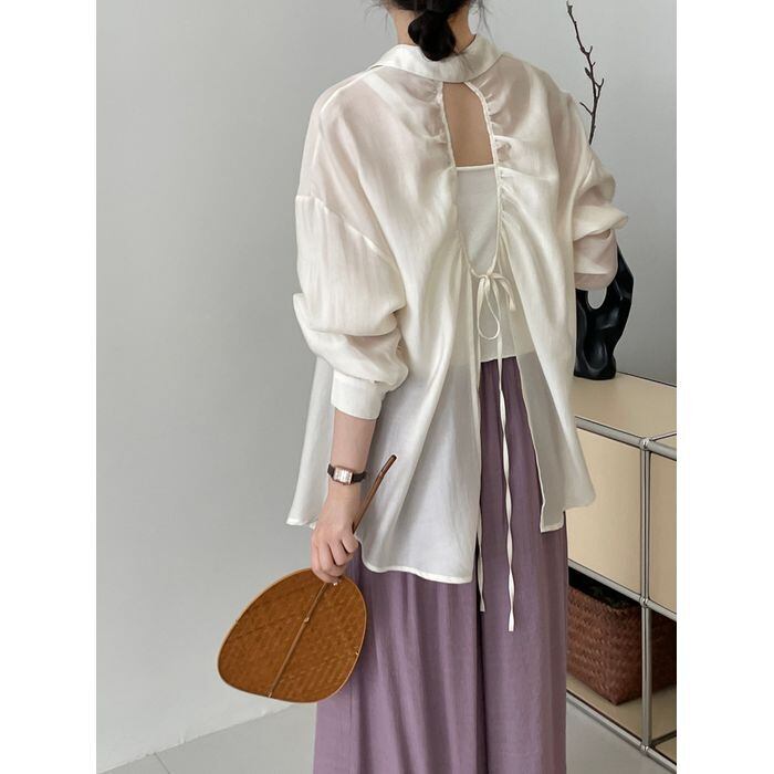 open back long sleeve sheer shirt m0392