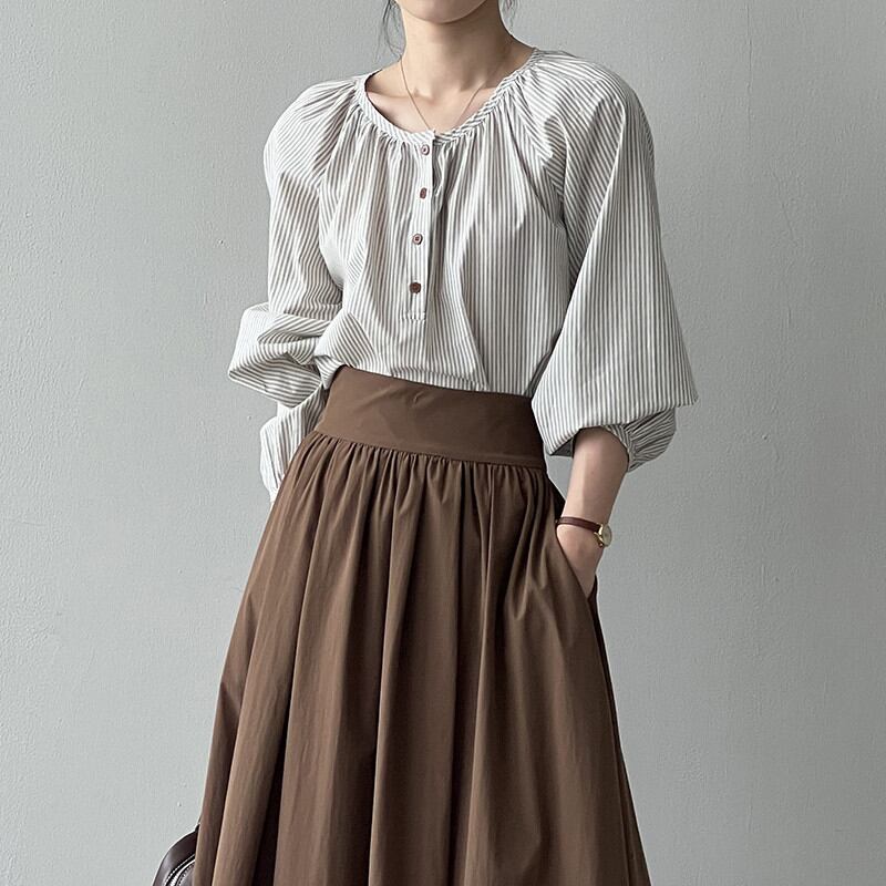 シンプルながらも、袖のボリューム感でトレンドを取り入れたアイテムです。