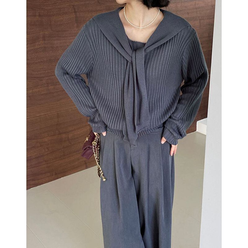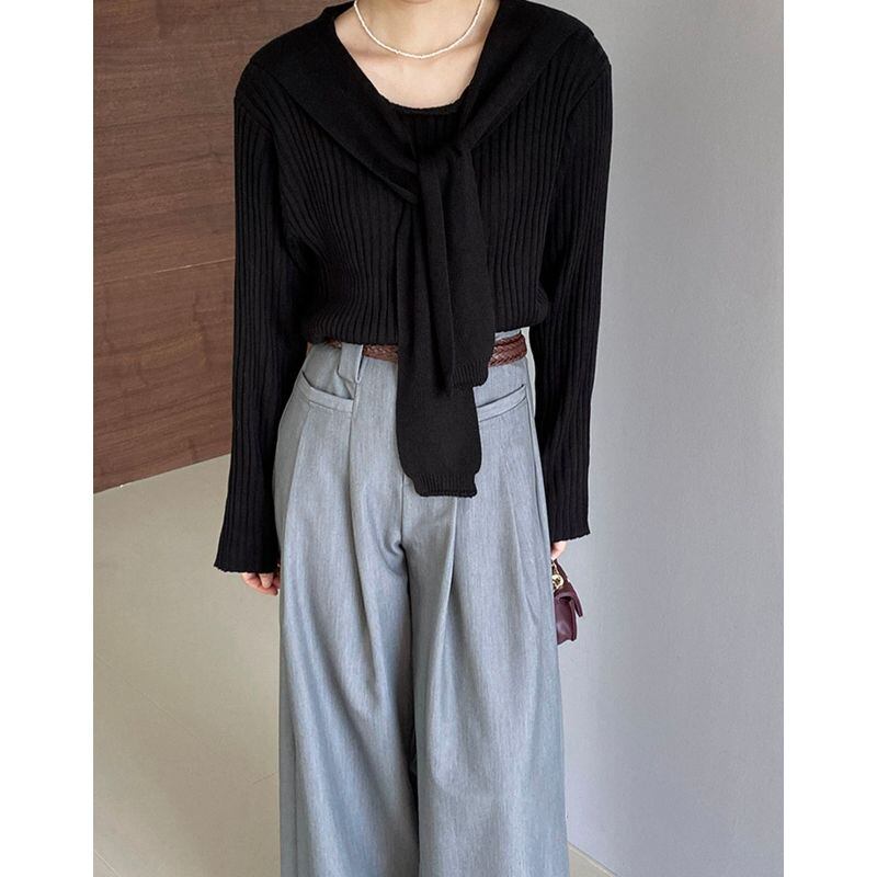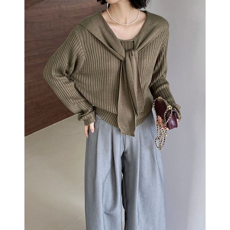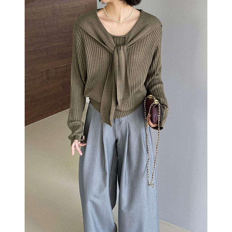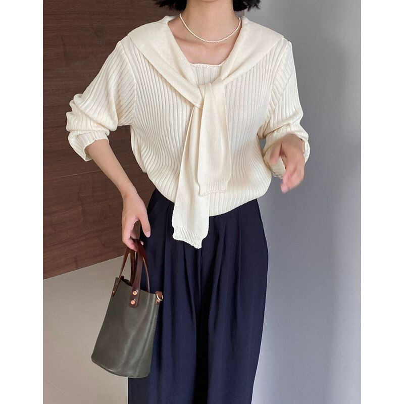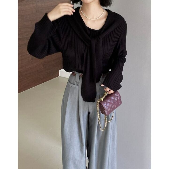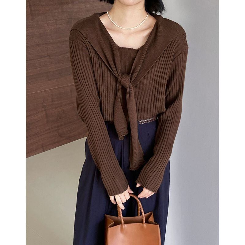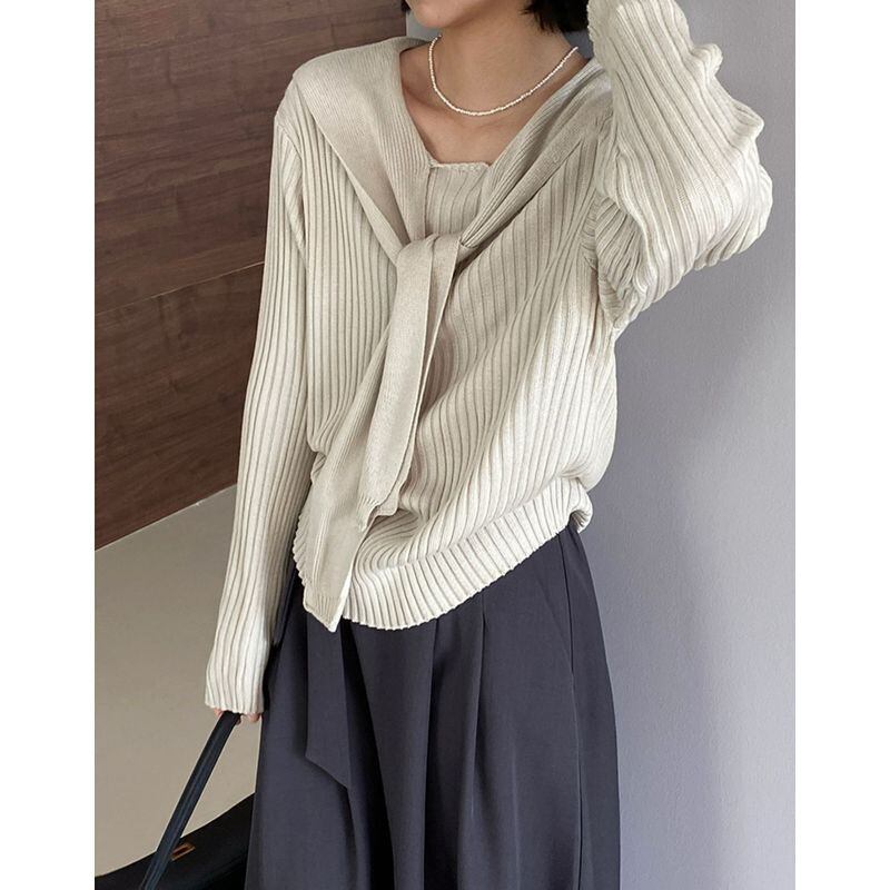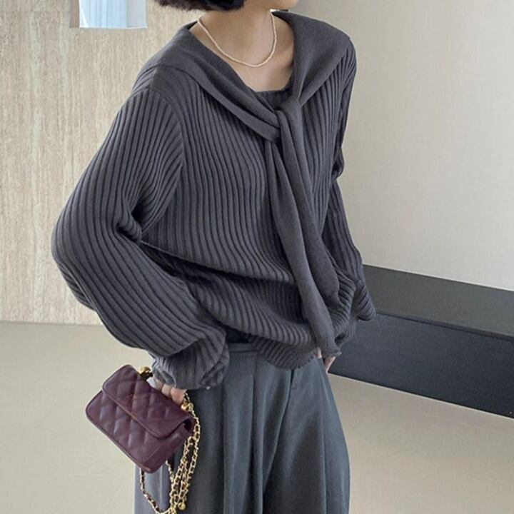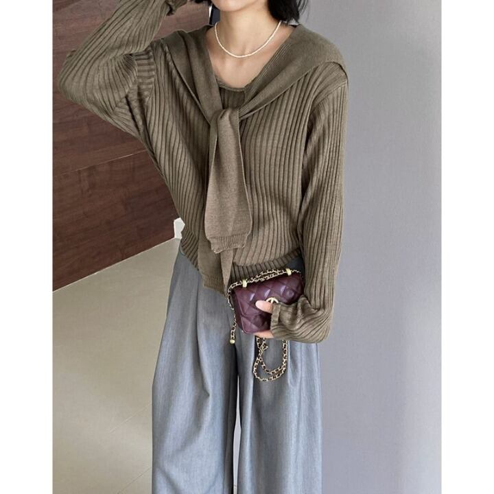 layered ribbed knit with shawl m0428