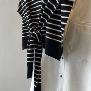 華やかさと上品さを兼ね備えたストライプショールカーディガン。