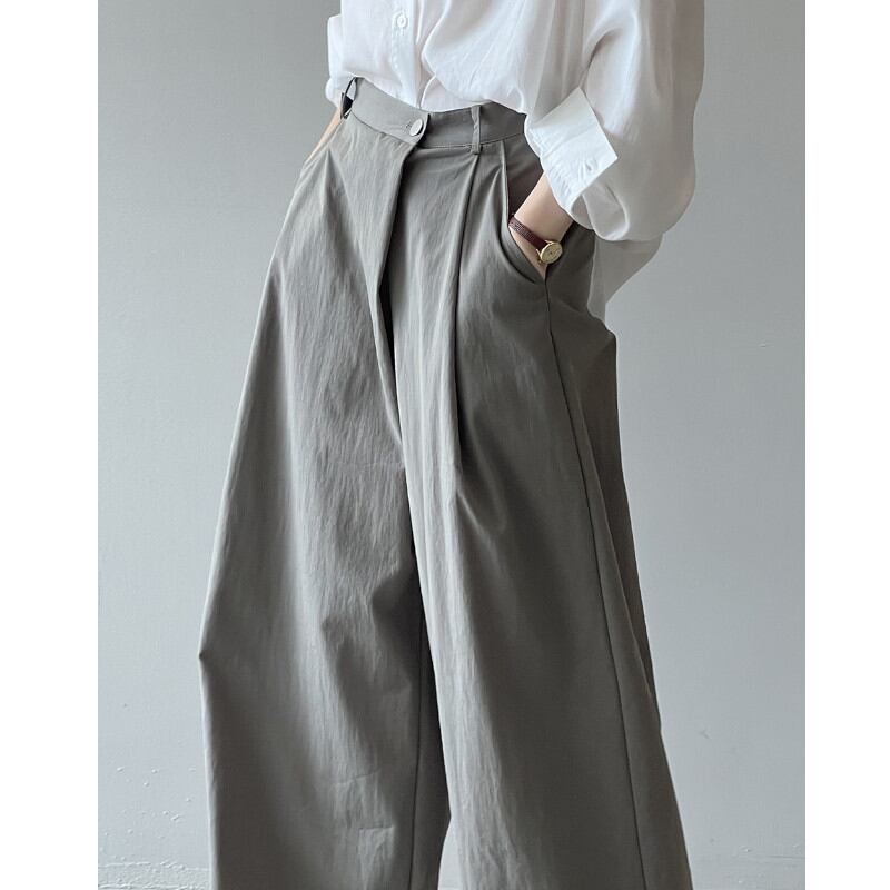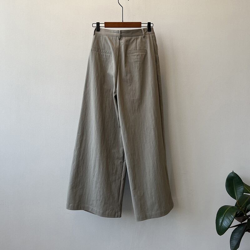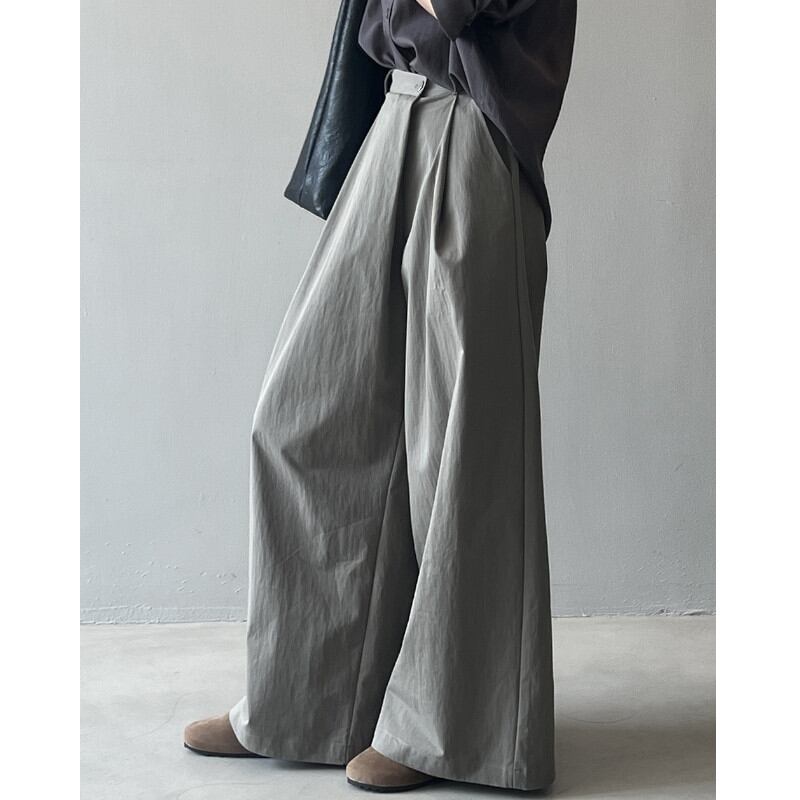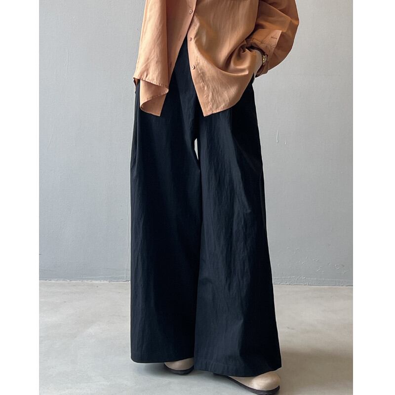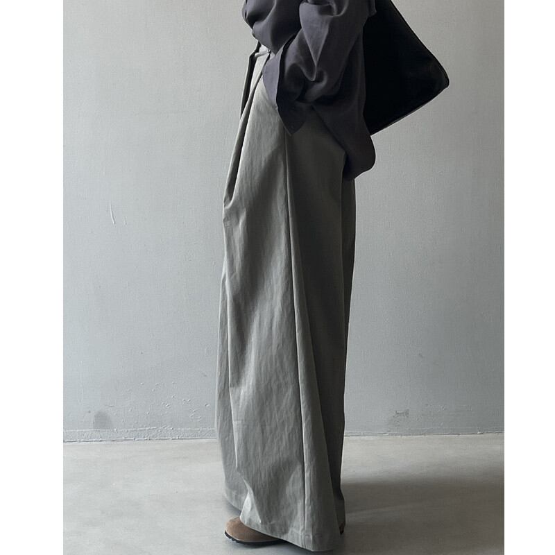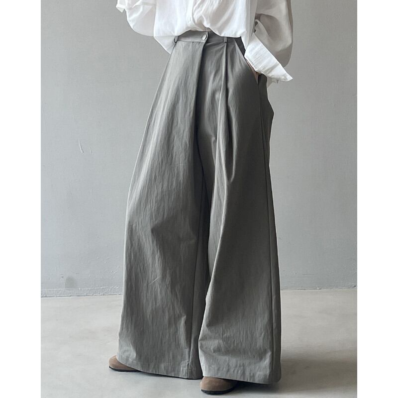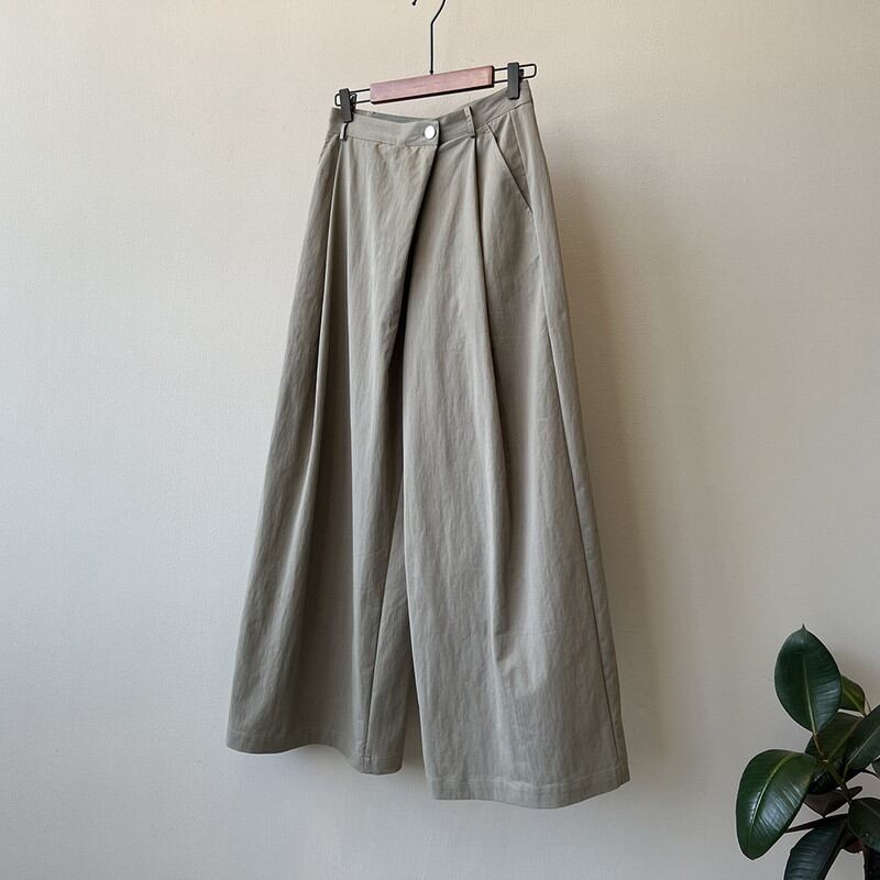 アシンメトリーなデザインが個性を引き立てる、ルーズワイドパンツ。