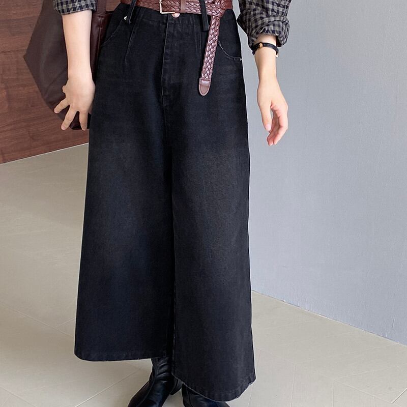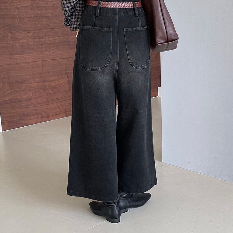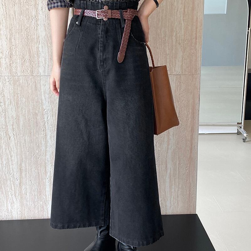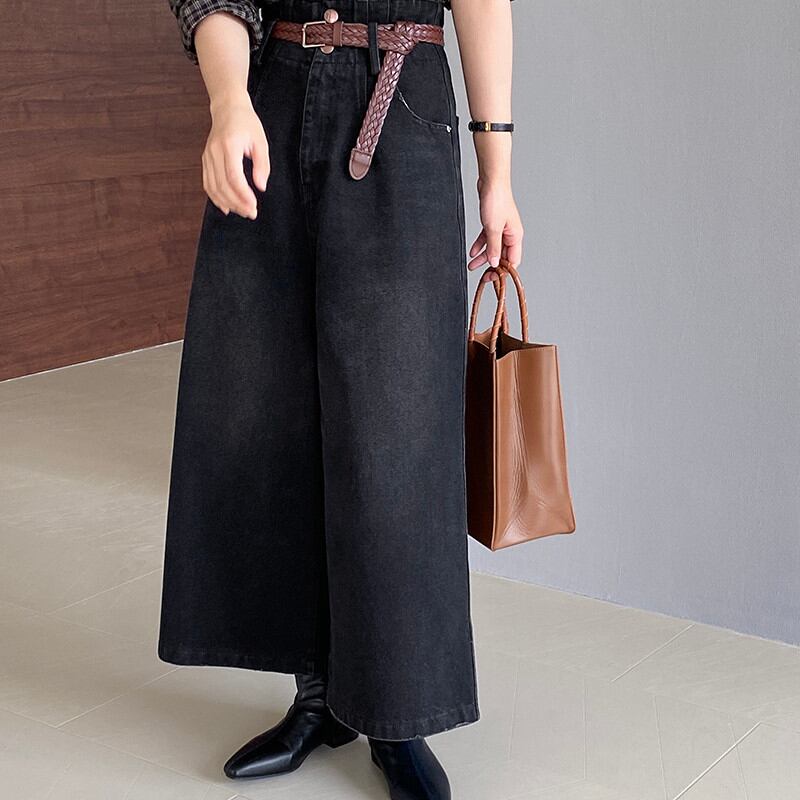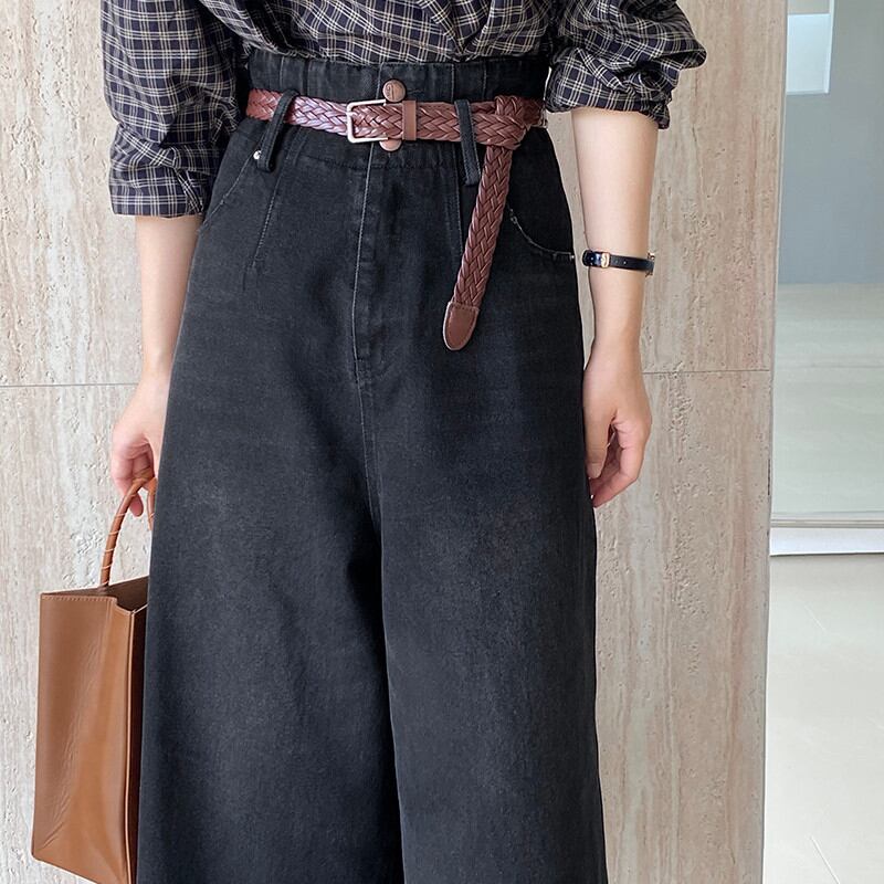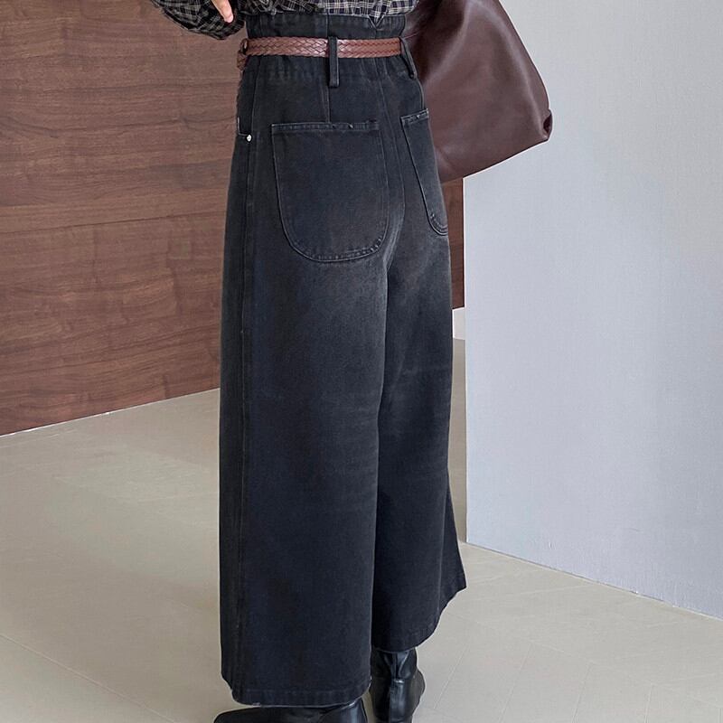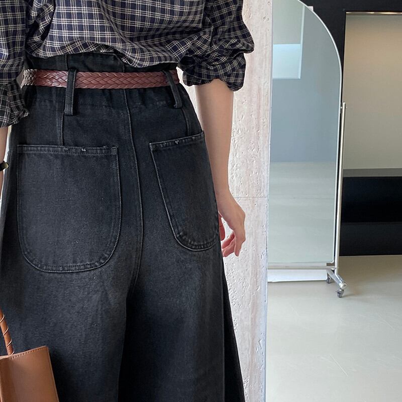 カジュアルなコーディネートにピッタリなハイウエストデニムワイドパンツ。