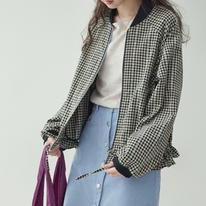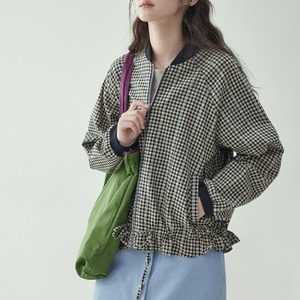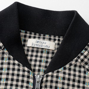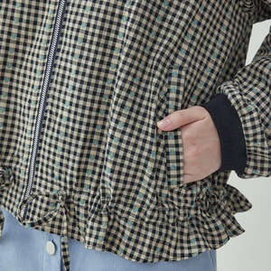 シックなブラックの色合いがおしゃれなギンガムチェックジップジャケット。