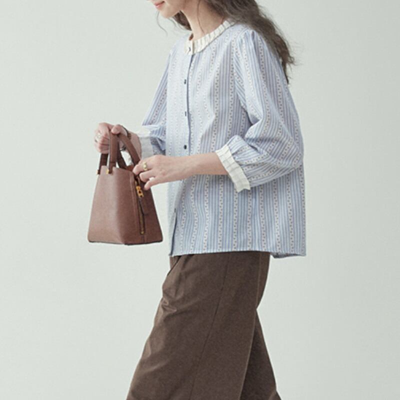 エレガントなブルーのストライプ柄が、大人の女性にふさわしい落ち着きを演出してくれます。