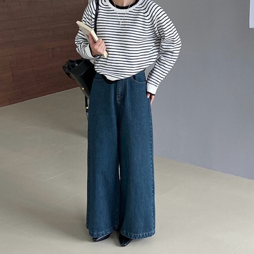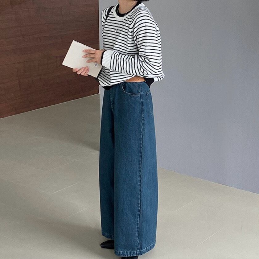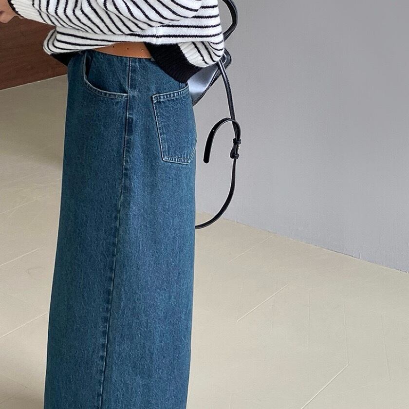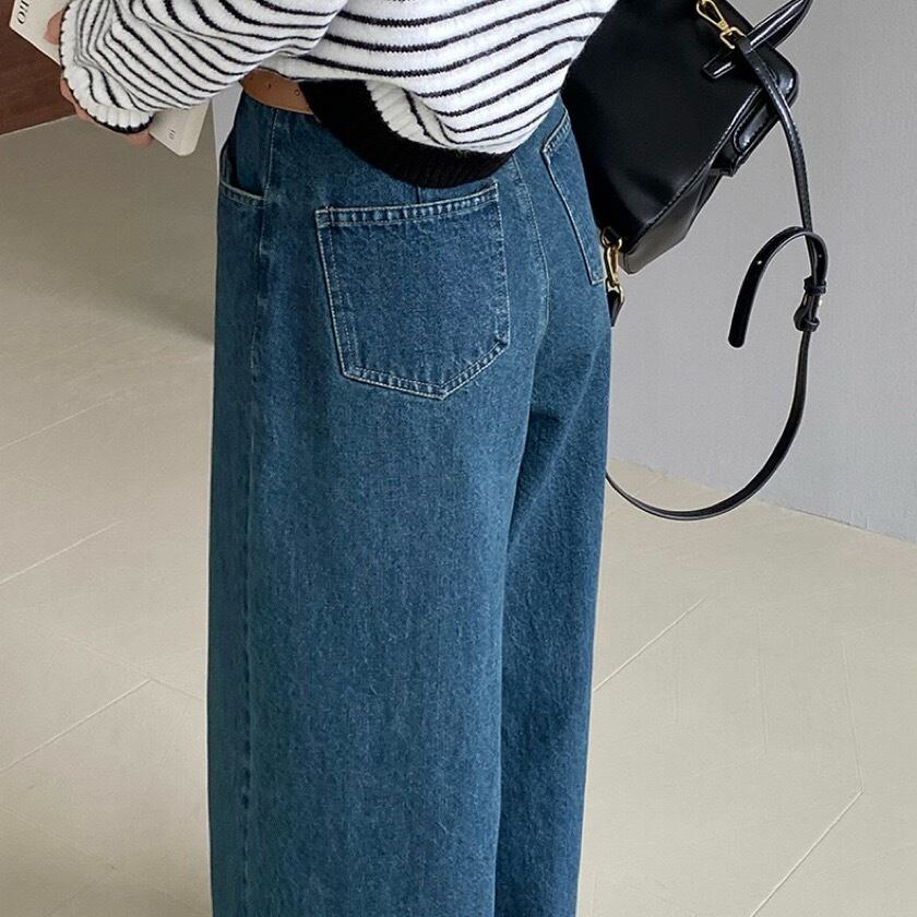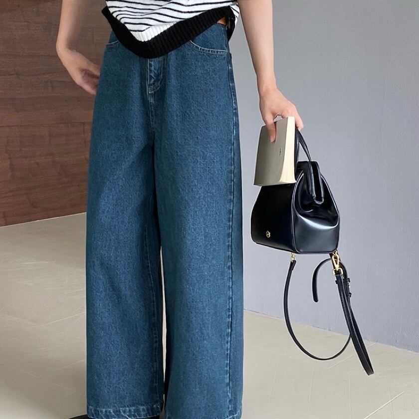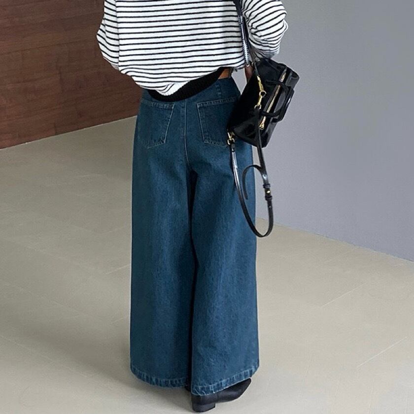 ハイウエストでシルエットを美しく見せるデニムワイドパンツ。