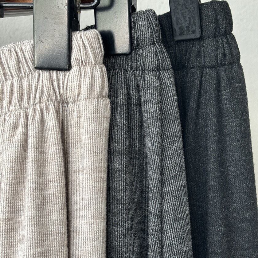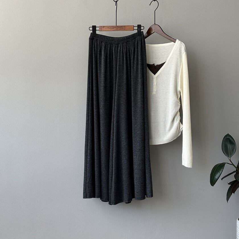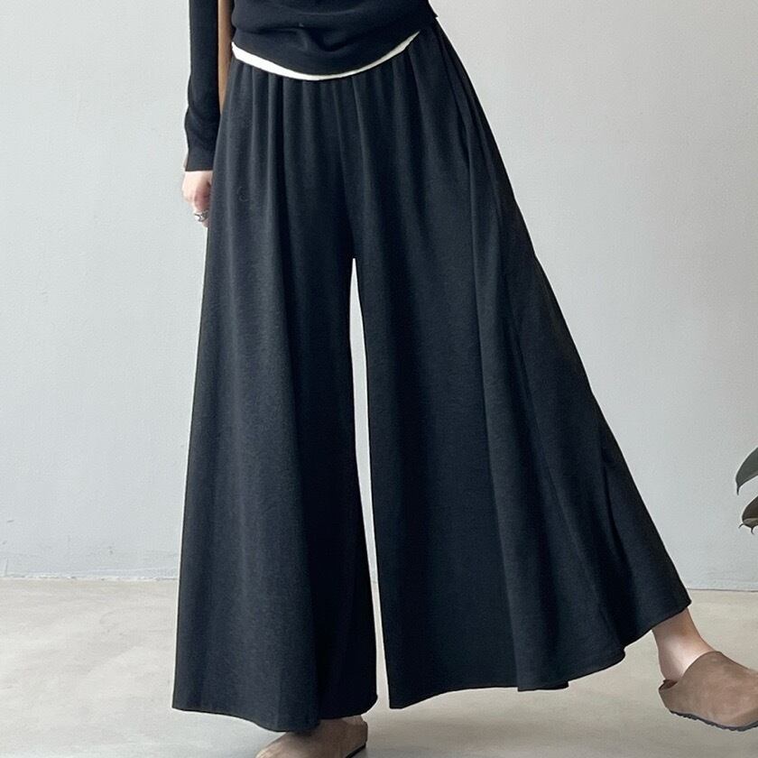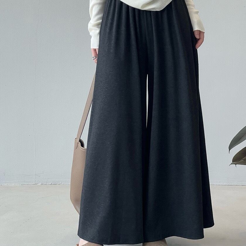 高いウエストラインが特徴のワイドレッグカジュアルパンツ。