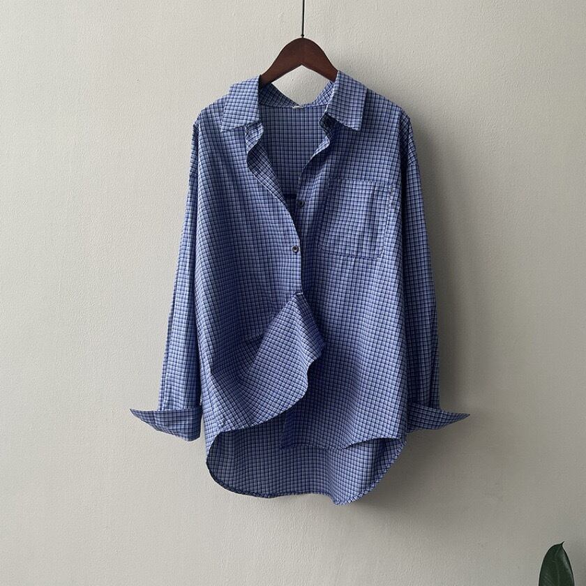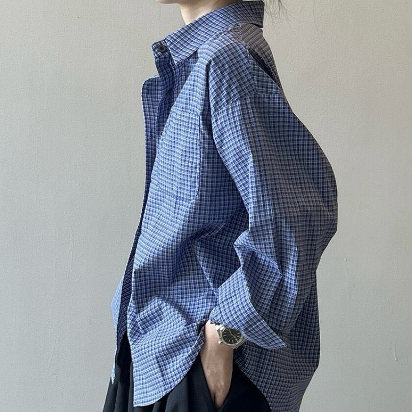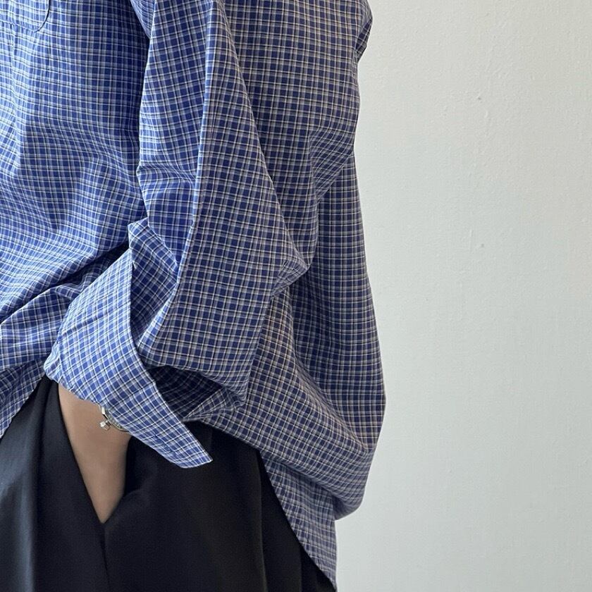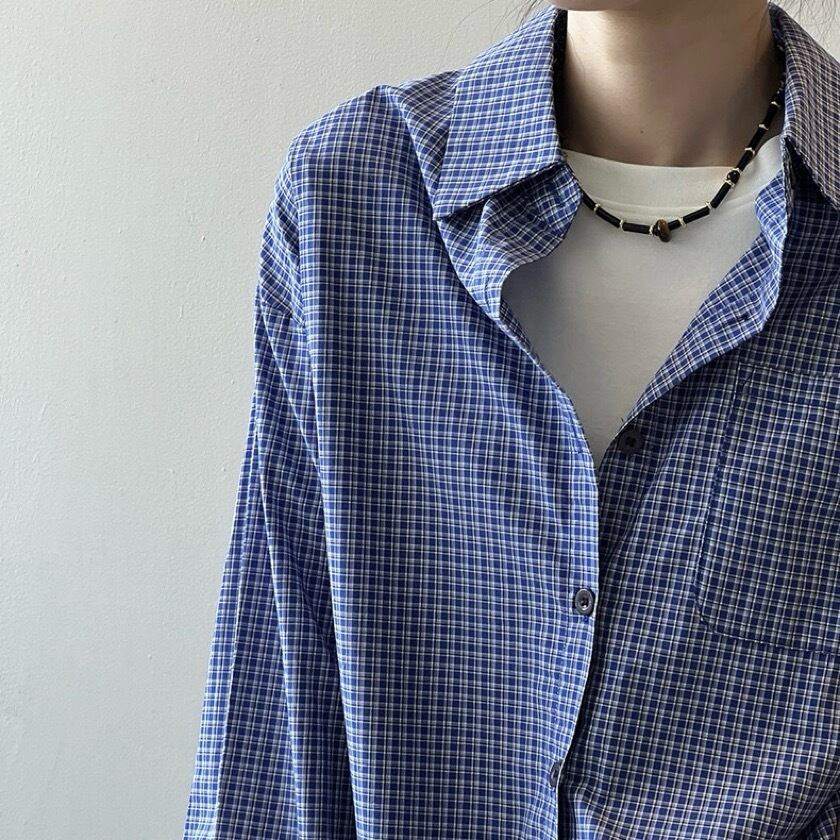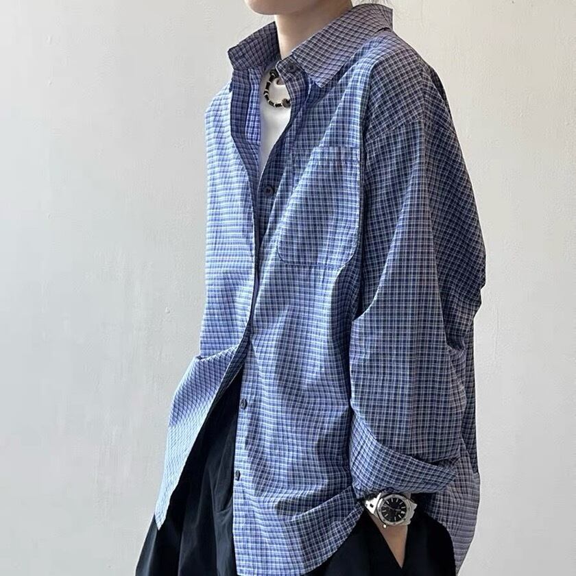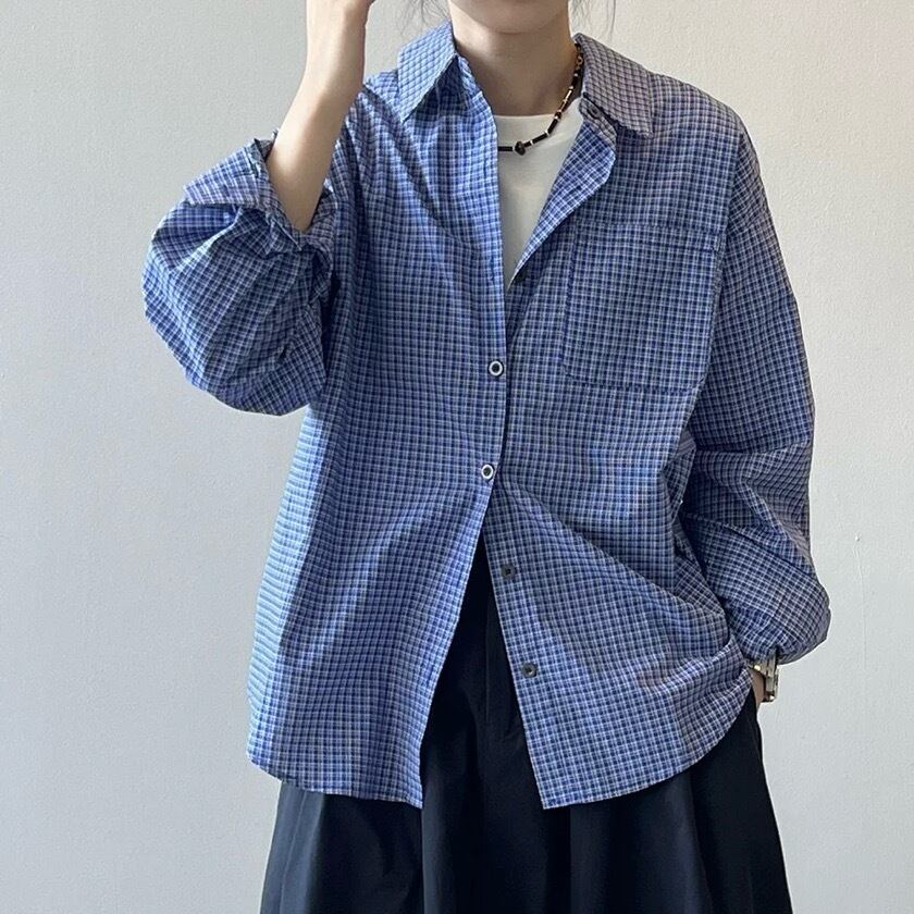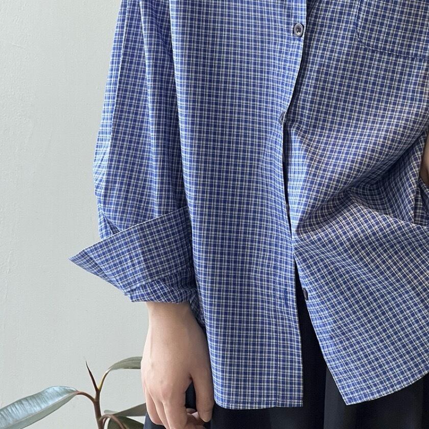 コットン素材を使用した、爽やかな印象のチェック柄カジュアルシャツ。