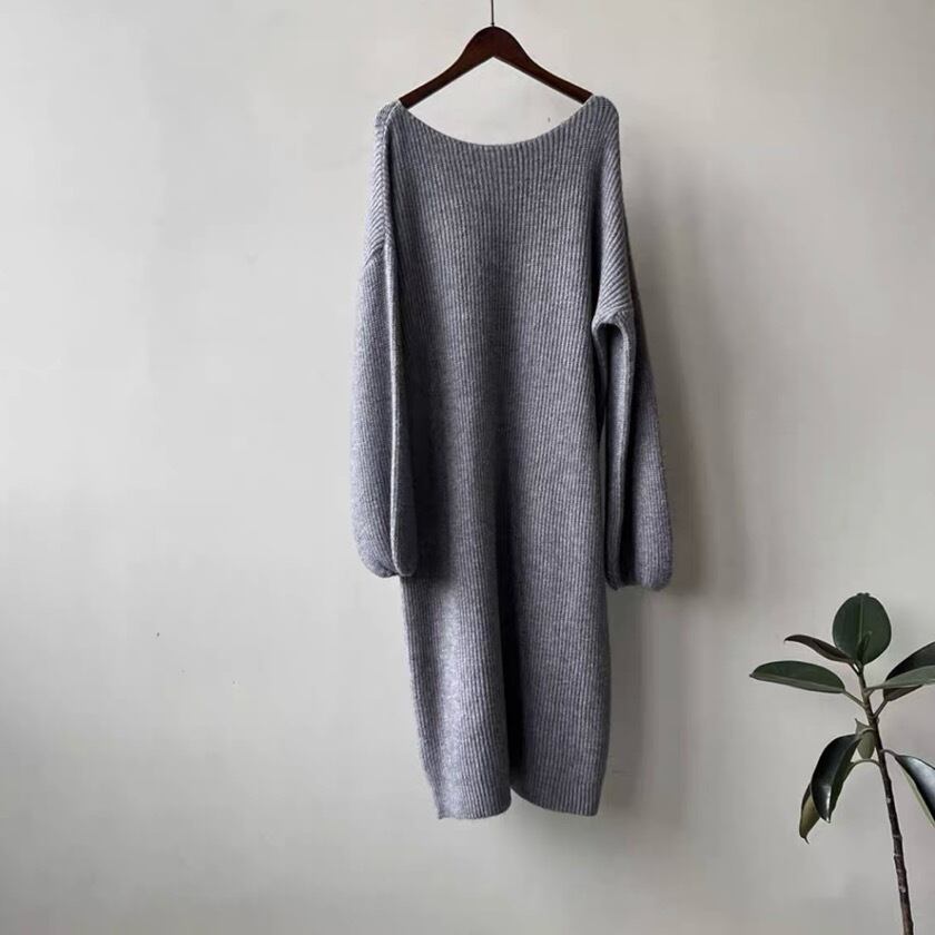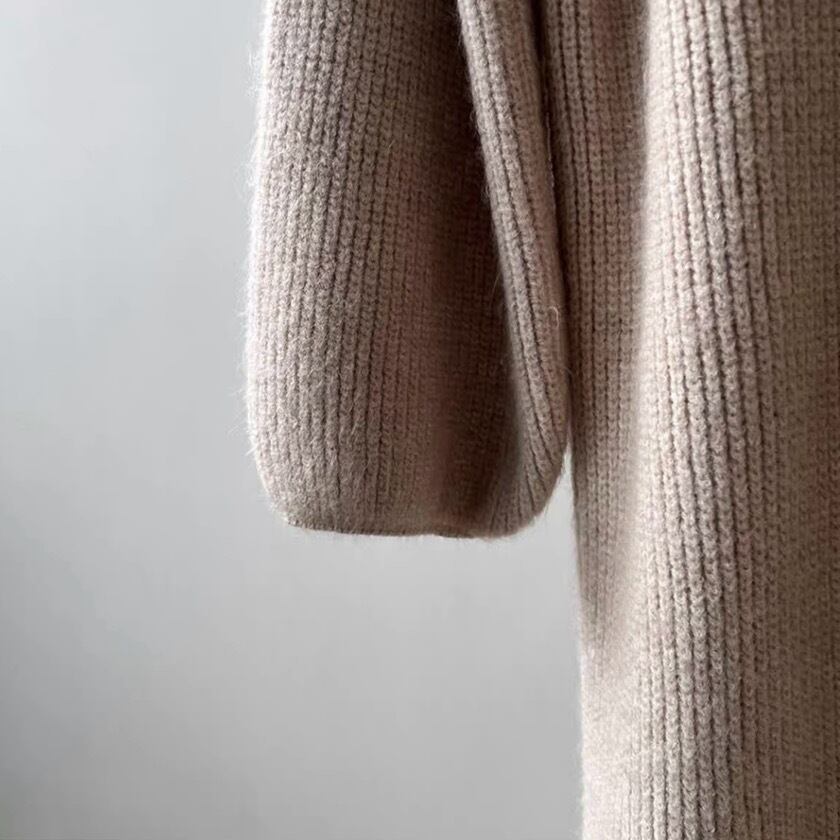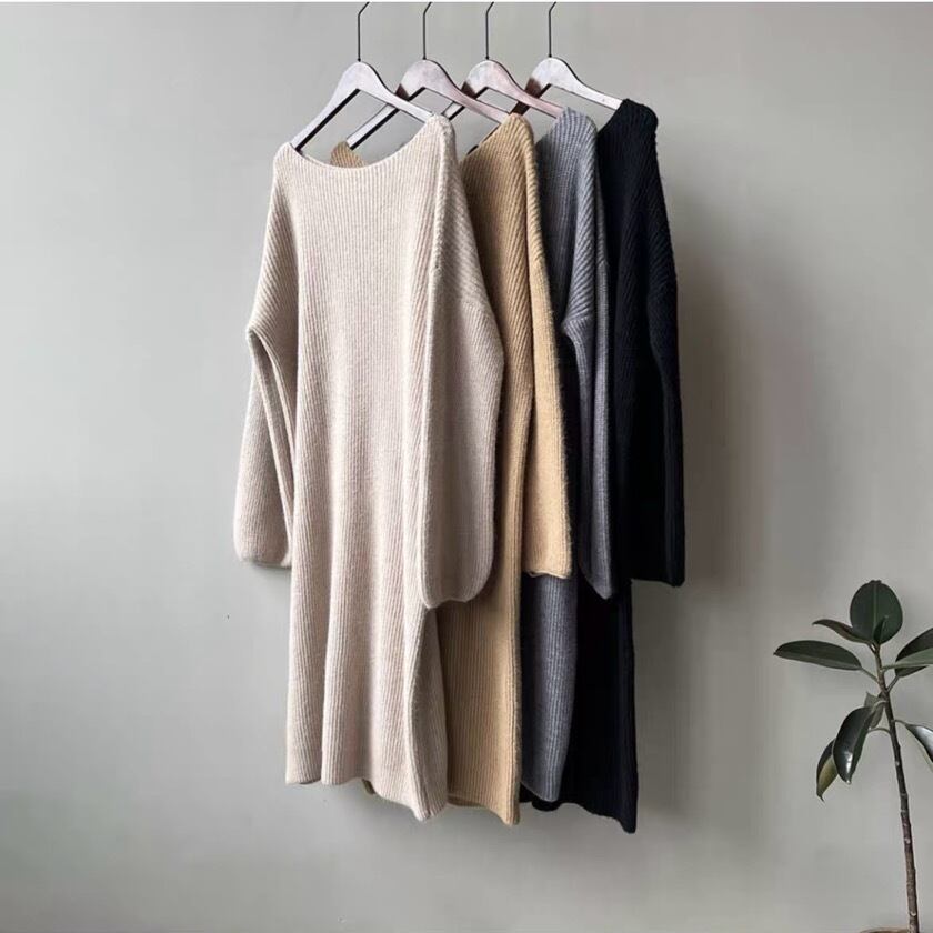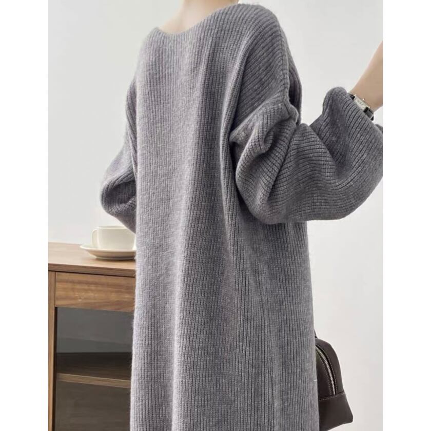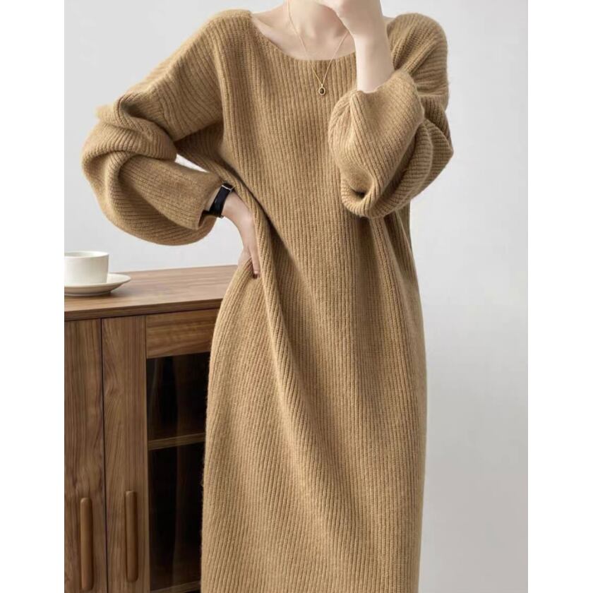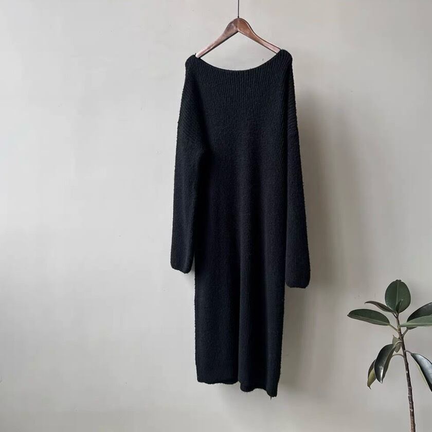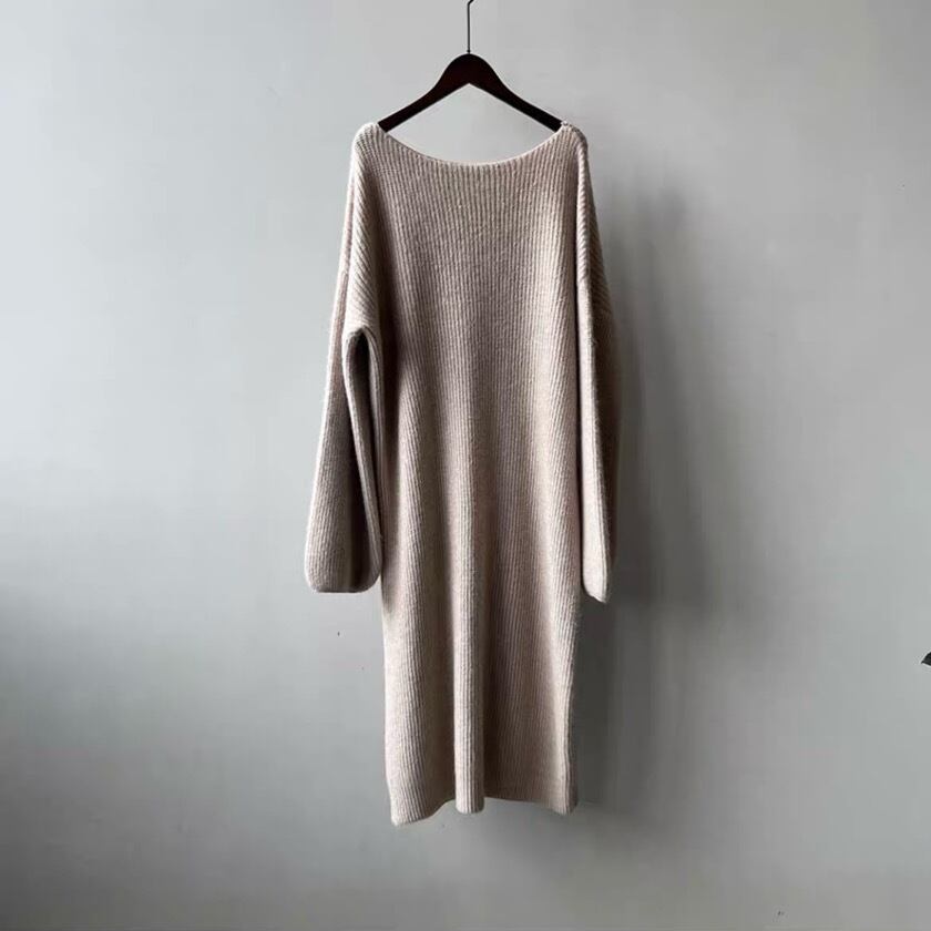 ゆったりとしたシルエットが心地よいリブニットのロングワンピース。