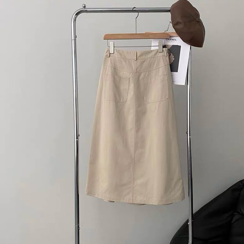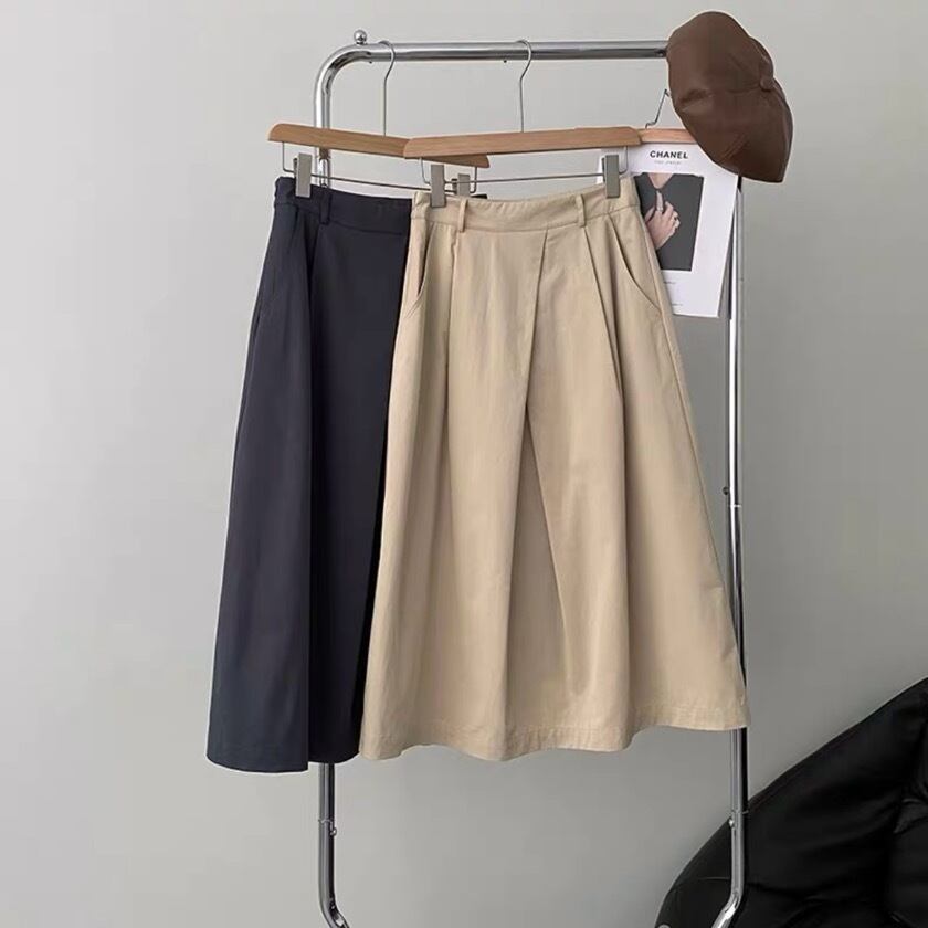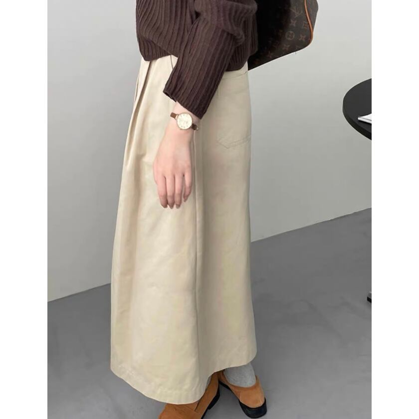 洗練されたデザインが魅力のAラインタックロングスカート。