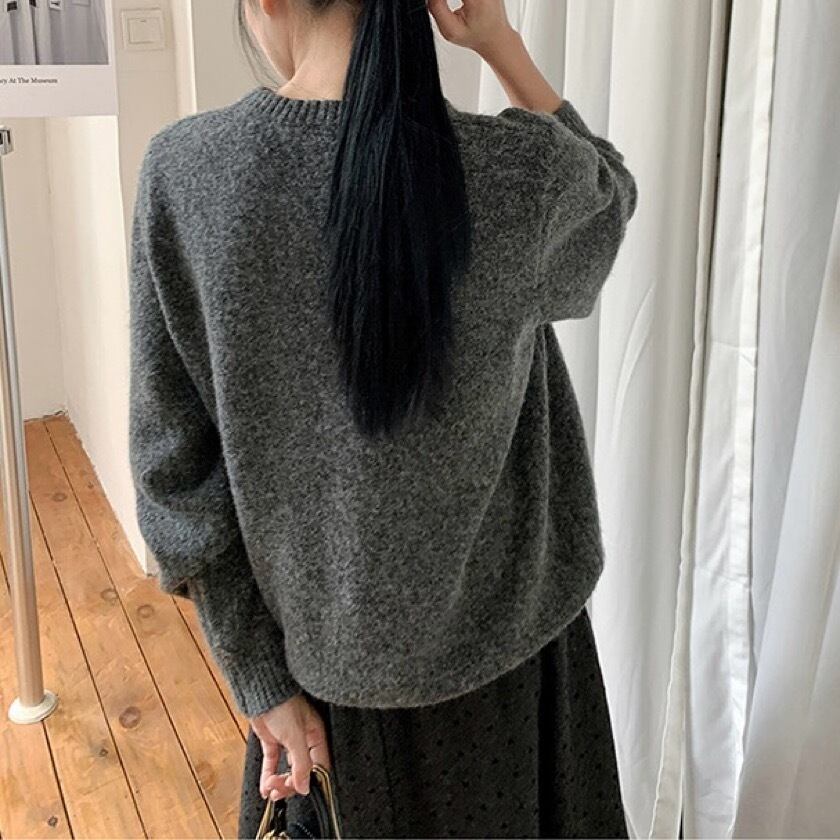 柔らかなニット素材が優しい肌触りを提供し、ラウンドネックのデザインがシンプルながらも華やかさをプラスします。