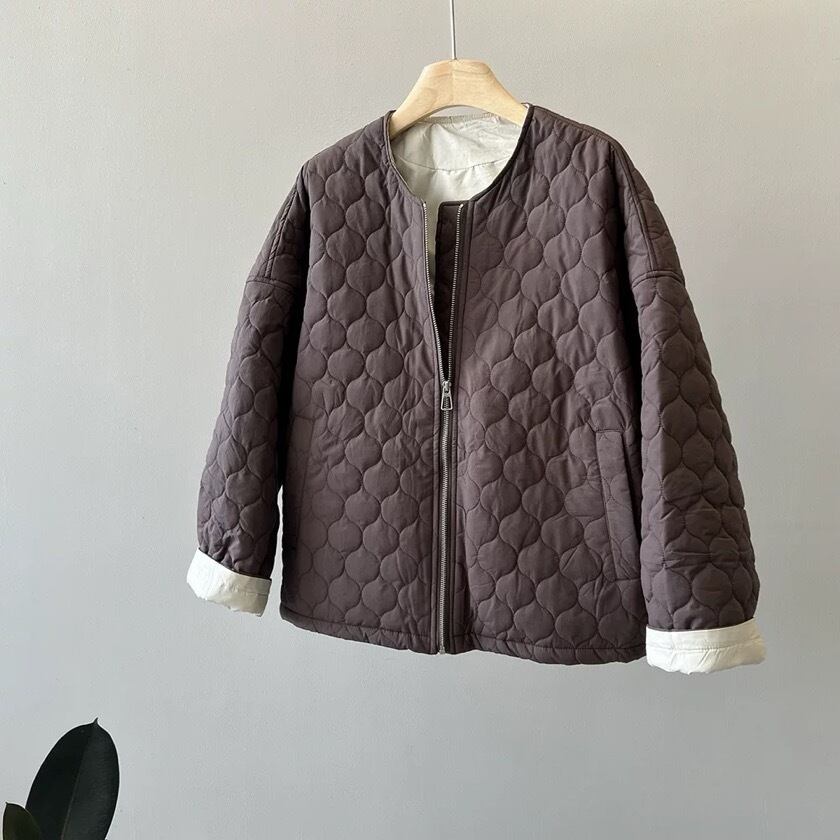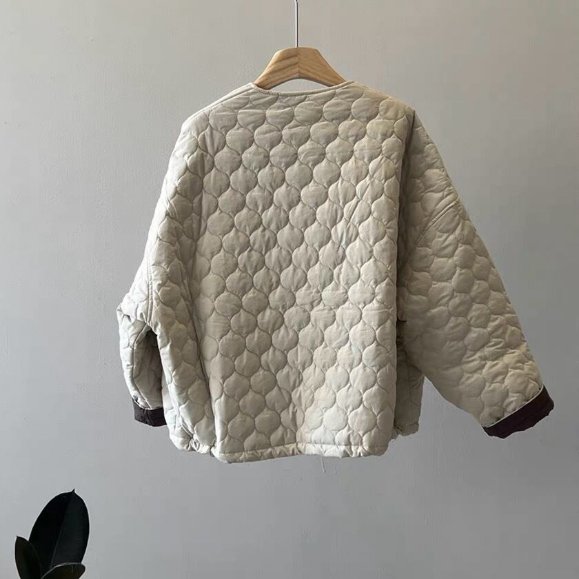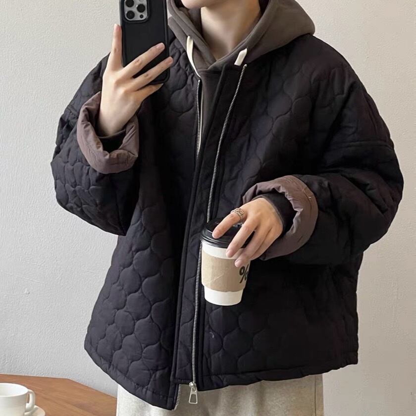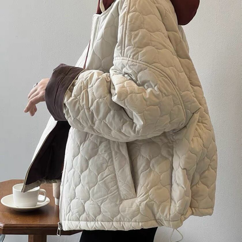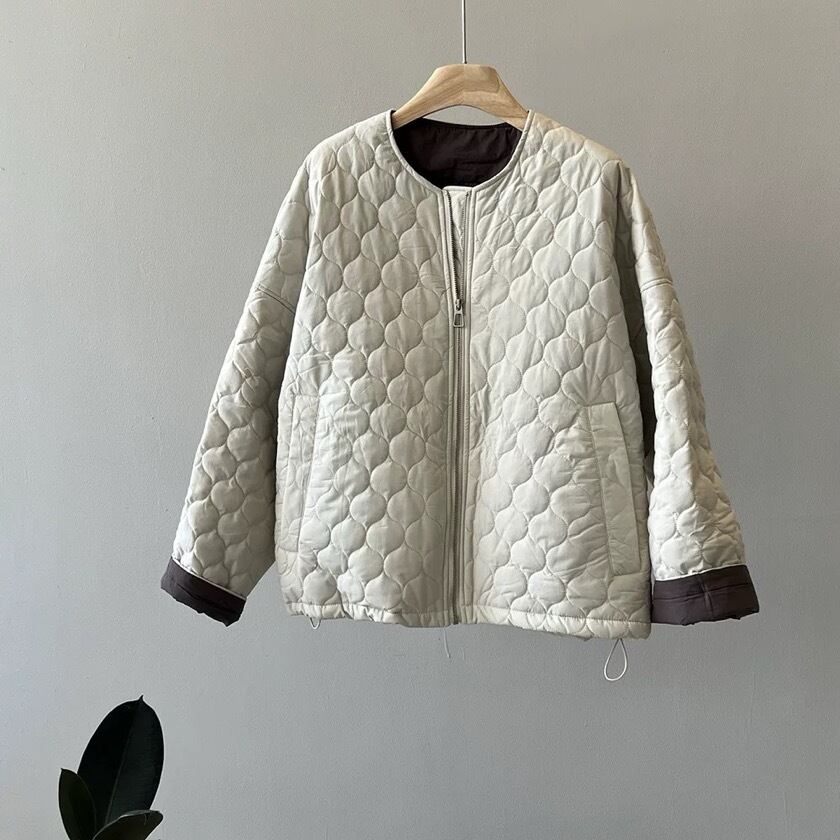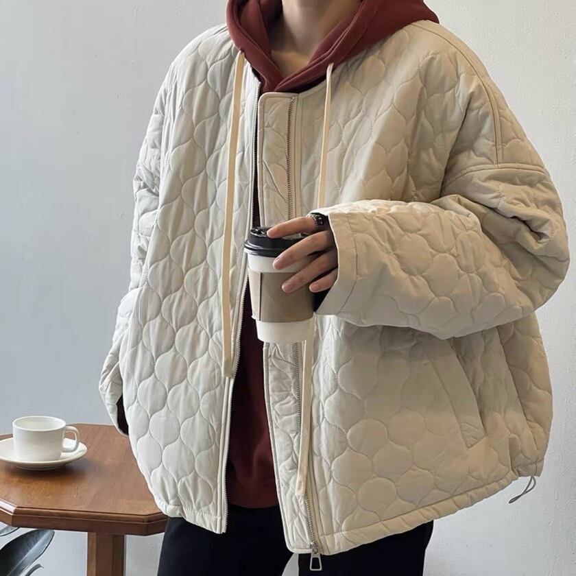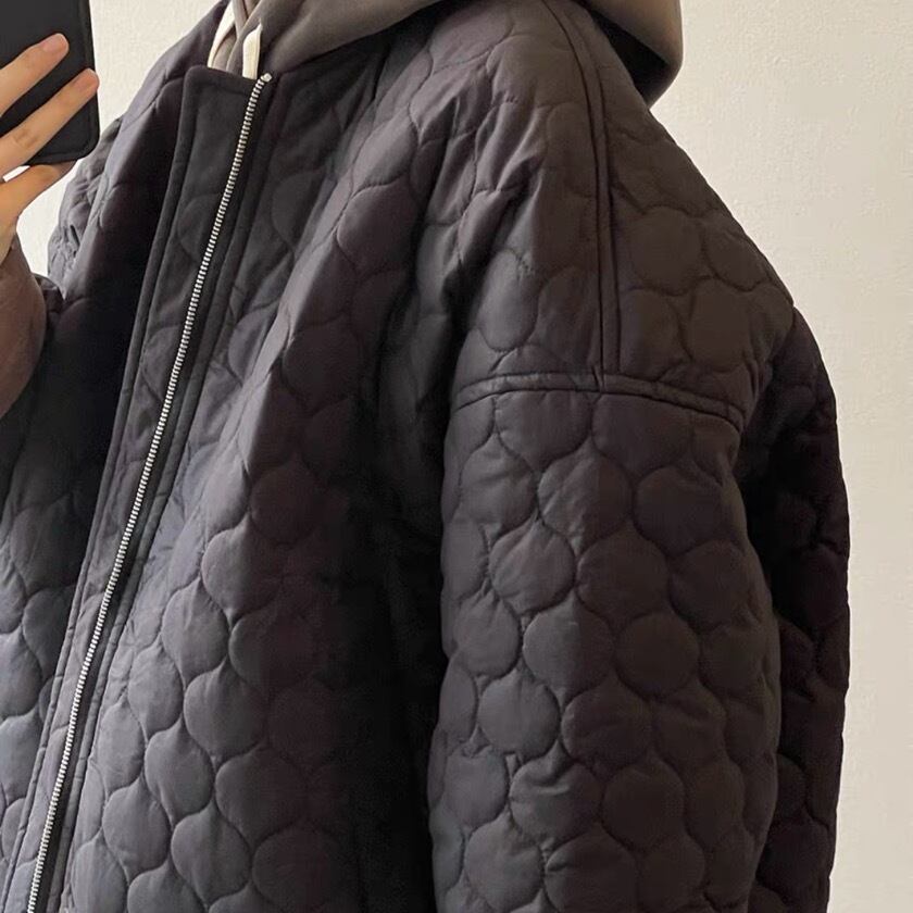 洗練されたデザインが魅力のルーズフィッティングコットンキルティングジャケット。