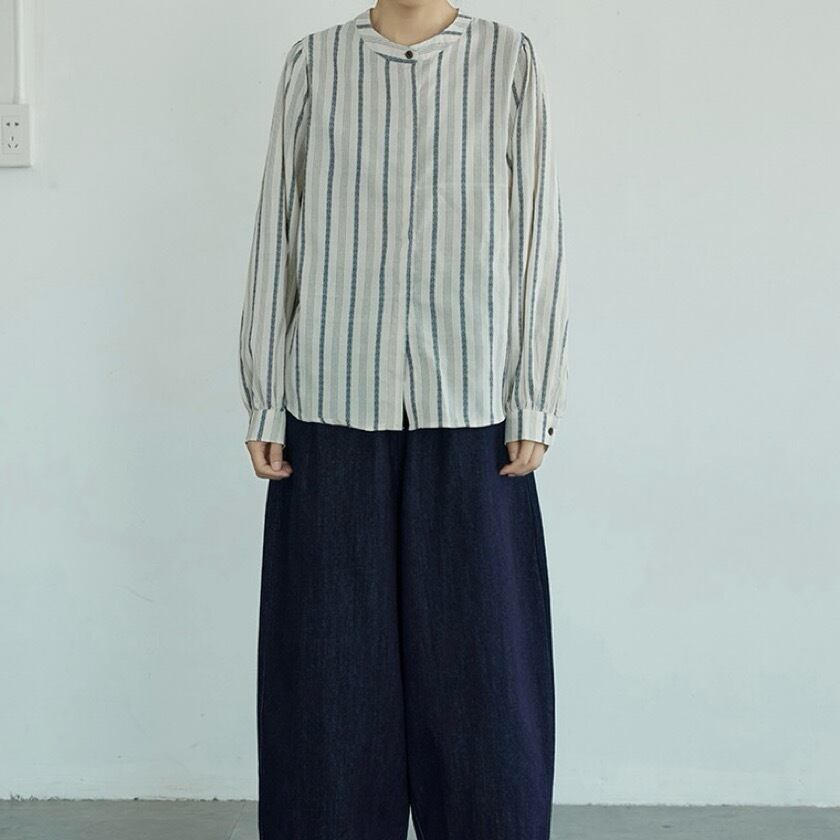 洗練されたストライプデザインが特徴のカジュアルシャツ。