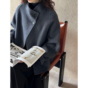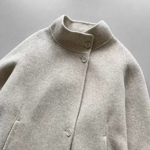 ハイネックデザインが素敵なショート丈ウールコートで、スタイリッシュなコーディネートを楽しめる一枚です。