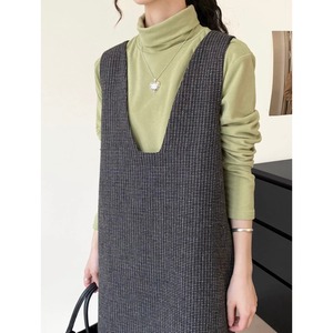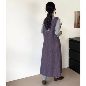 チェック柄デザインが魅力的なロング丈ジャンパースカート。